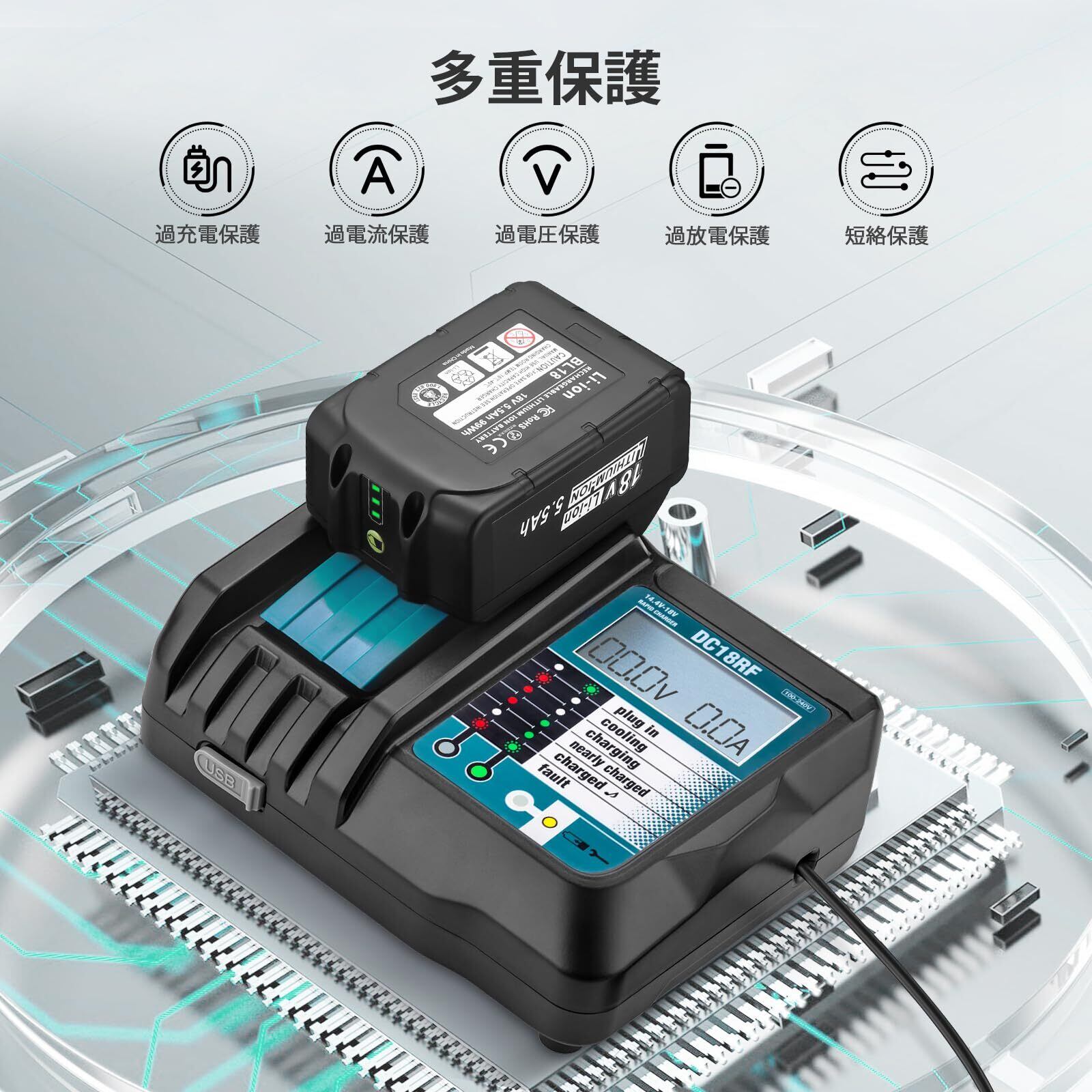 マキタ 18V バッテリー充電器セット BL1860B 互換 5.5Ah 大容量 PSE認証済 長寿命モデル 電動工具 長期保証マキタバッテリー 18v BL1860 BL1850 BL1830 BL1840 BL1830b BL1840b BL1850b BL1860b