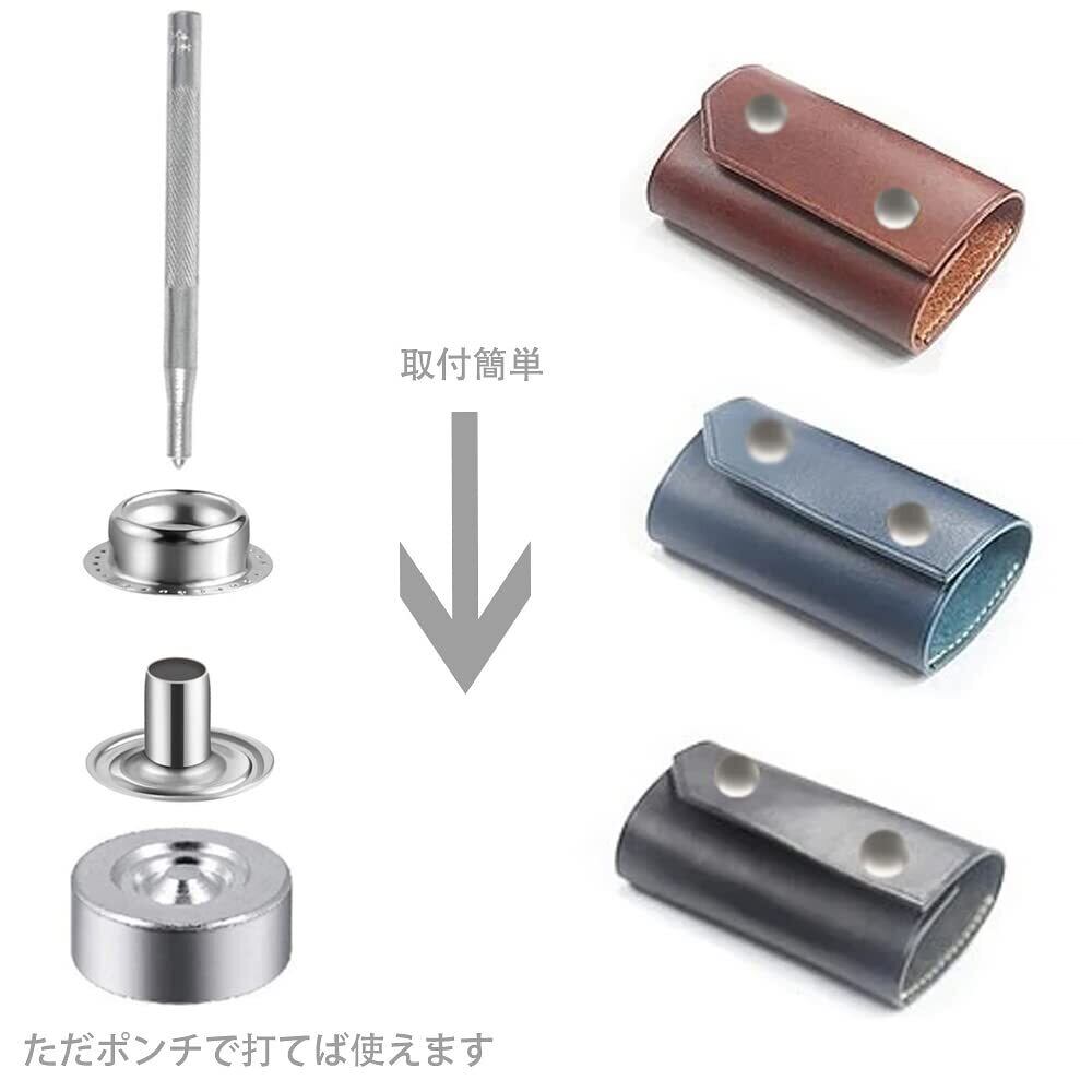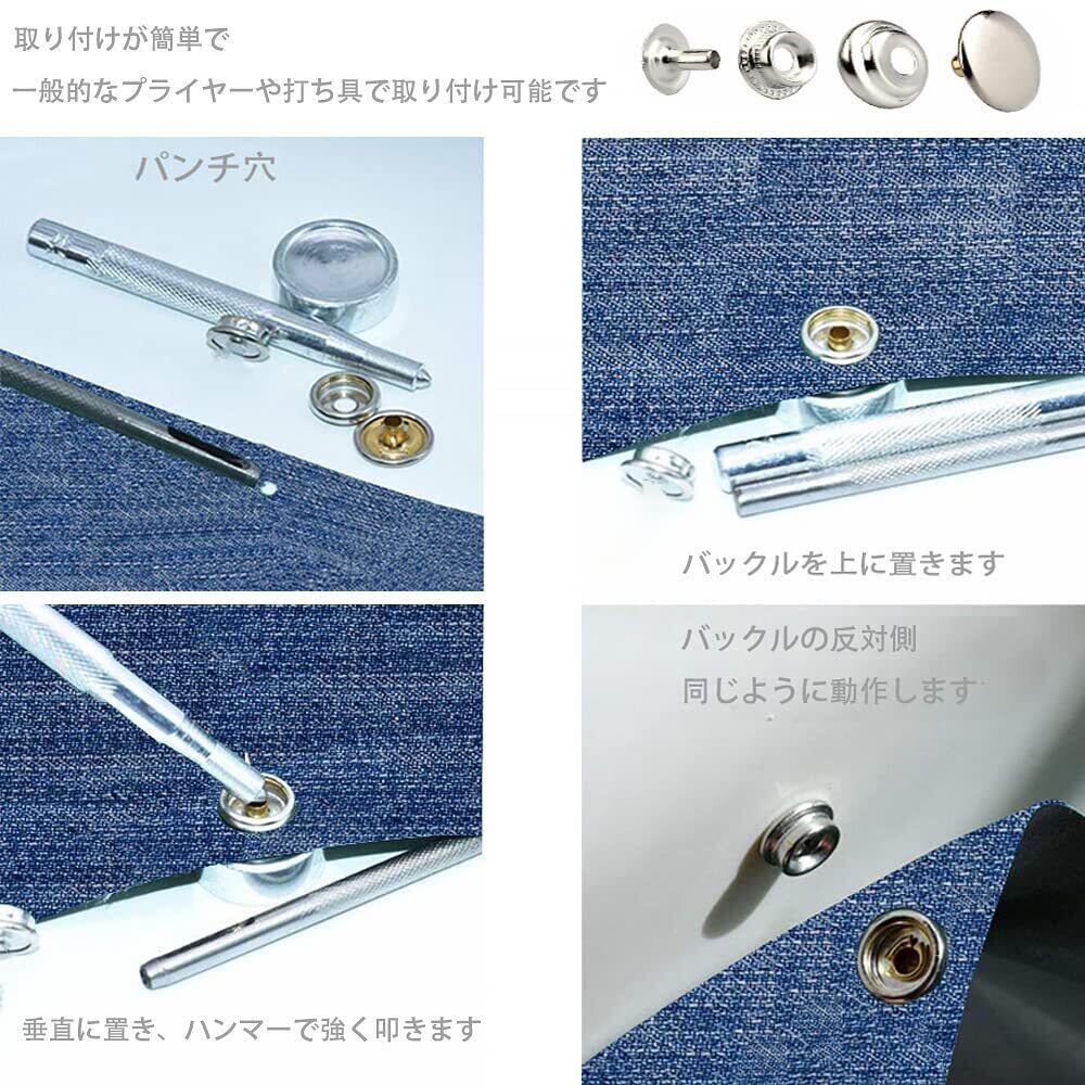 はめ込み式なので、取り付けが簡単で、ただポンチで打てば使えます。このリングスナップボタンは一般的なプライヤーや打ち具で取り付け可能です。注:強くぶつけた場合は、曲げることがあります。