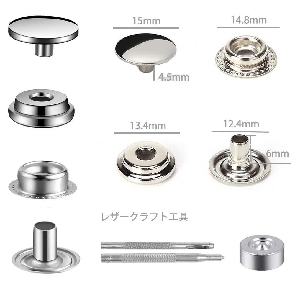 ジャンパーホック ステンレス鋼メタルボタン 15mm 10セット レザークラフト 工具 手芸/家庭/裁縫用 DIY 手作り/ハンドメイド/レザークラフト/鞄/服/ジャケットアクセサリー/財布/キーケース シルバー 収納ケース付き