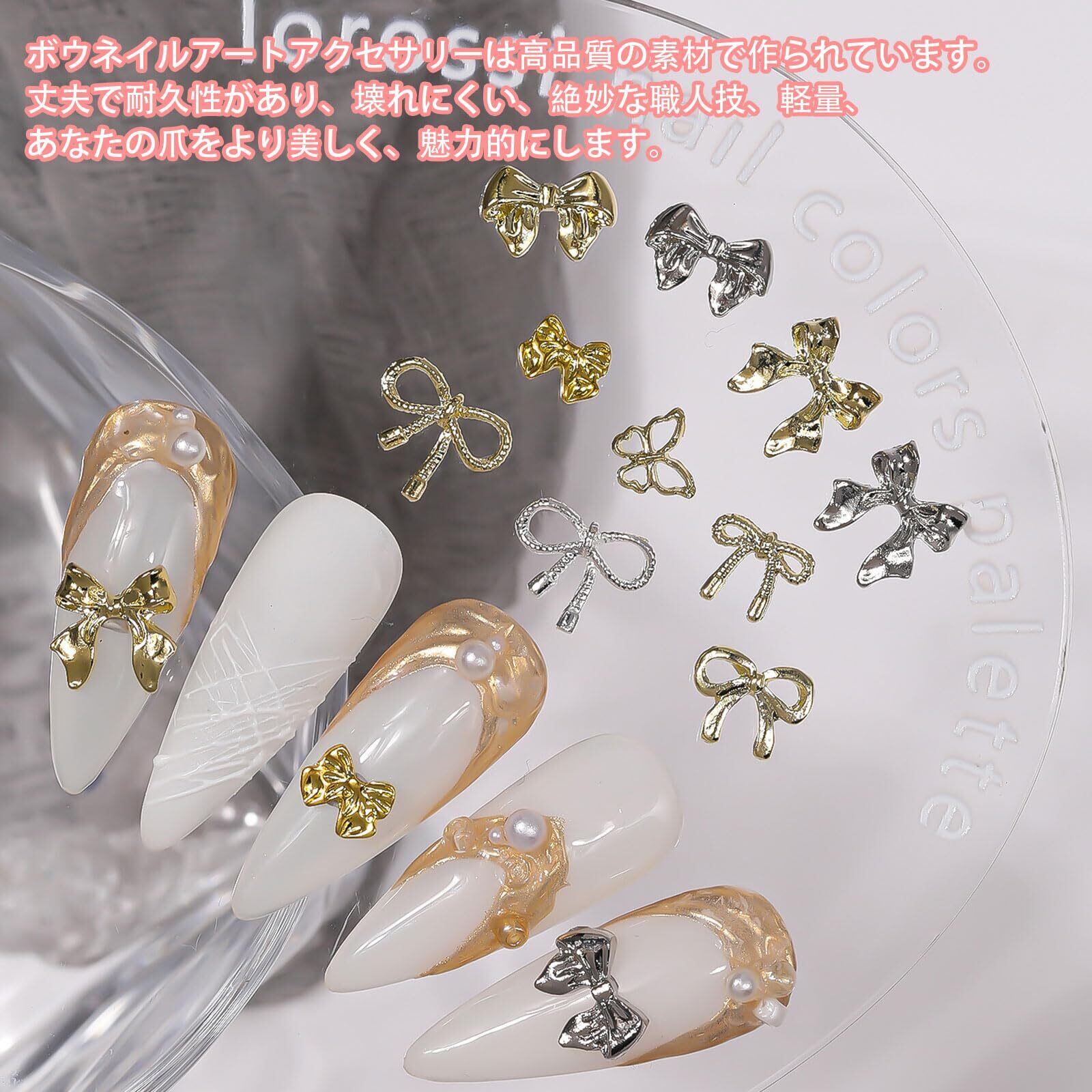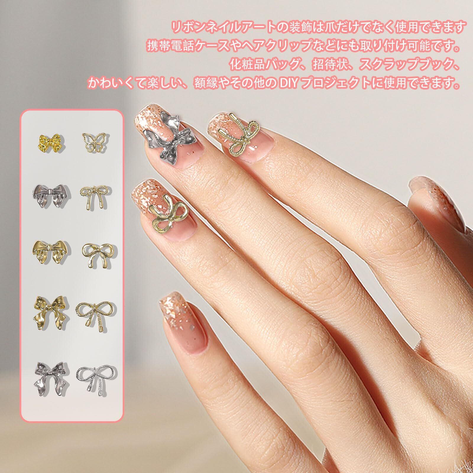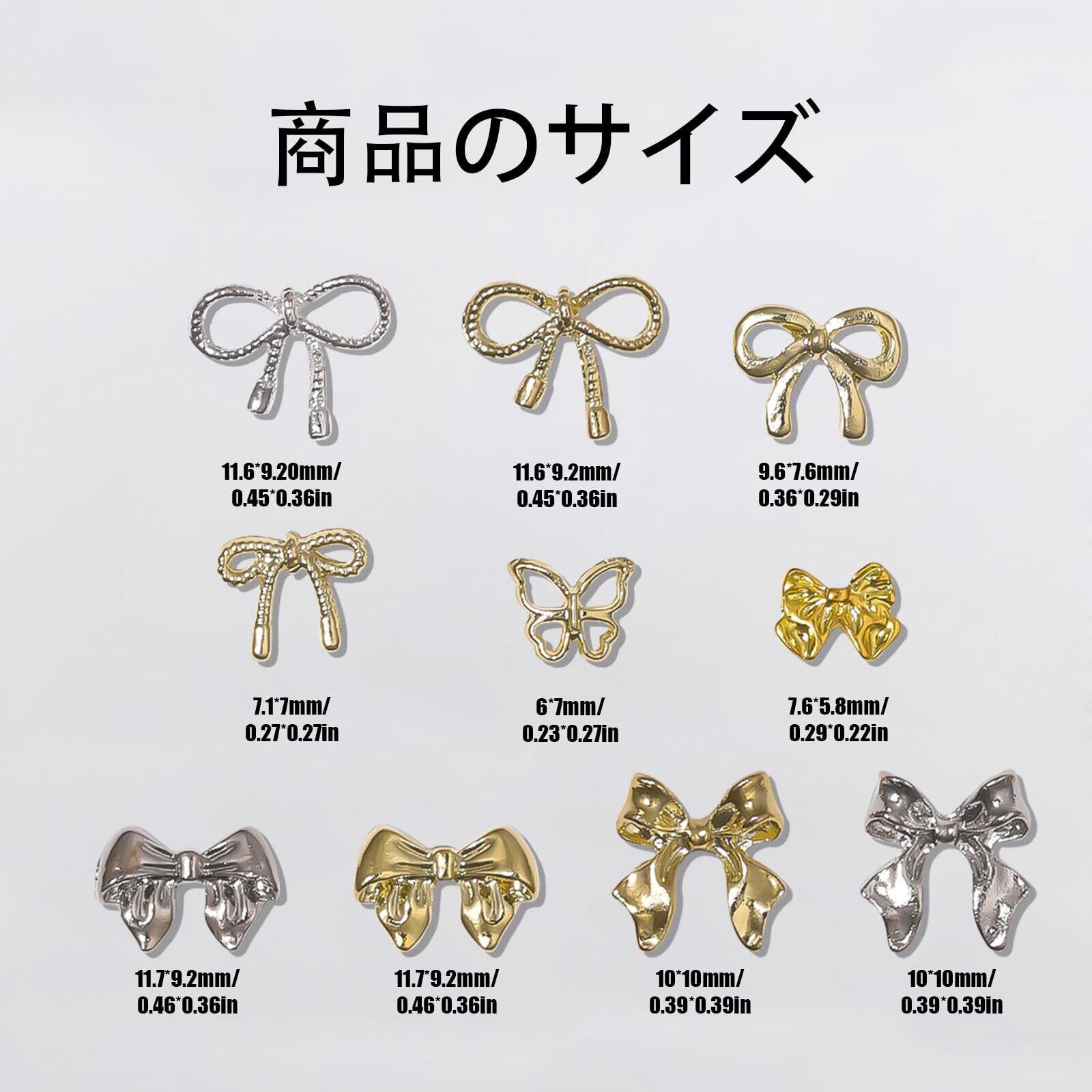 ネイルパーツ リボン 100個セット 3D 立体 蝶 リボン ネイルパーツ シルバー ネイル リボン パーツ 大きめ 蝶々 ネイルアート デコパーツ メタルパーツ ジュエリーパーツ ハンドメイド (金+銀)