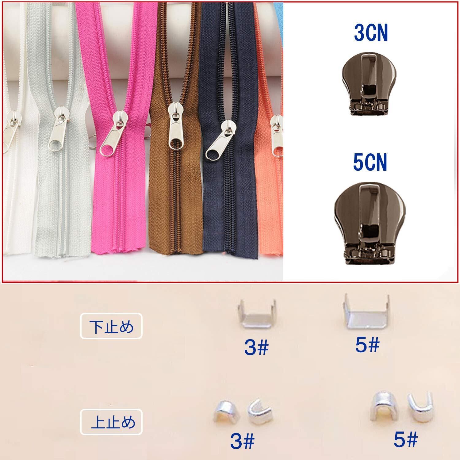 【適合のファスナー種類】コイルファスナー:3CN 5CN(各4個)、上下止め付き(上止め20個、下止め10個)