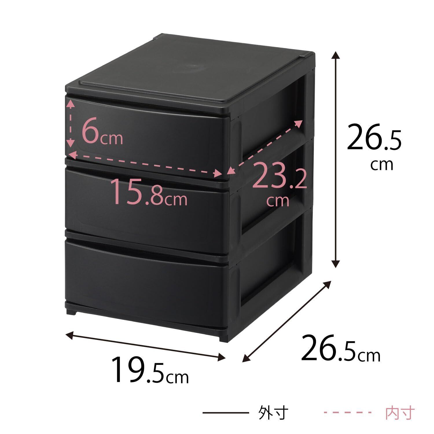 サンカ ポスデコ カラーボックスにピッタリフィット 引き出し収納ボックス ハーフ 浅3段 ブラック ずれを防ぐラバーストッパー 重ねて使える スタッキングチェスト ロック機構 日本製 収納ケース 小物 衣装 (幅19.5x奥行26.5x高さ26.5cm) NpdA5-a3BK