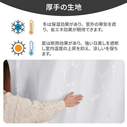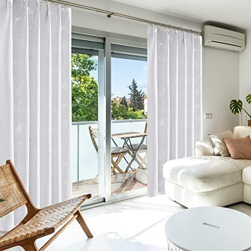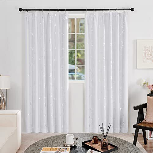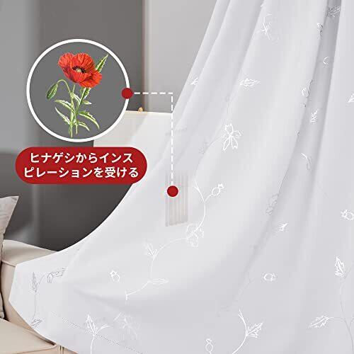 Deconovo 1級遮光カーテン 花柄 省エネ 昼夜目隠し 銀箔プリント 2枚組 幅100cm丈135cm ホワイト