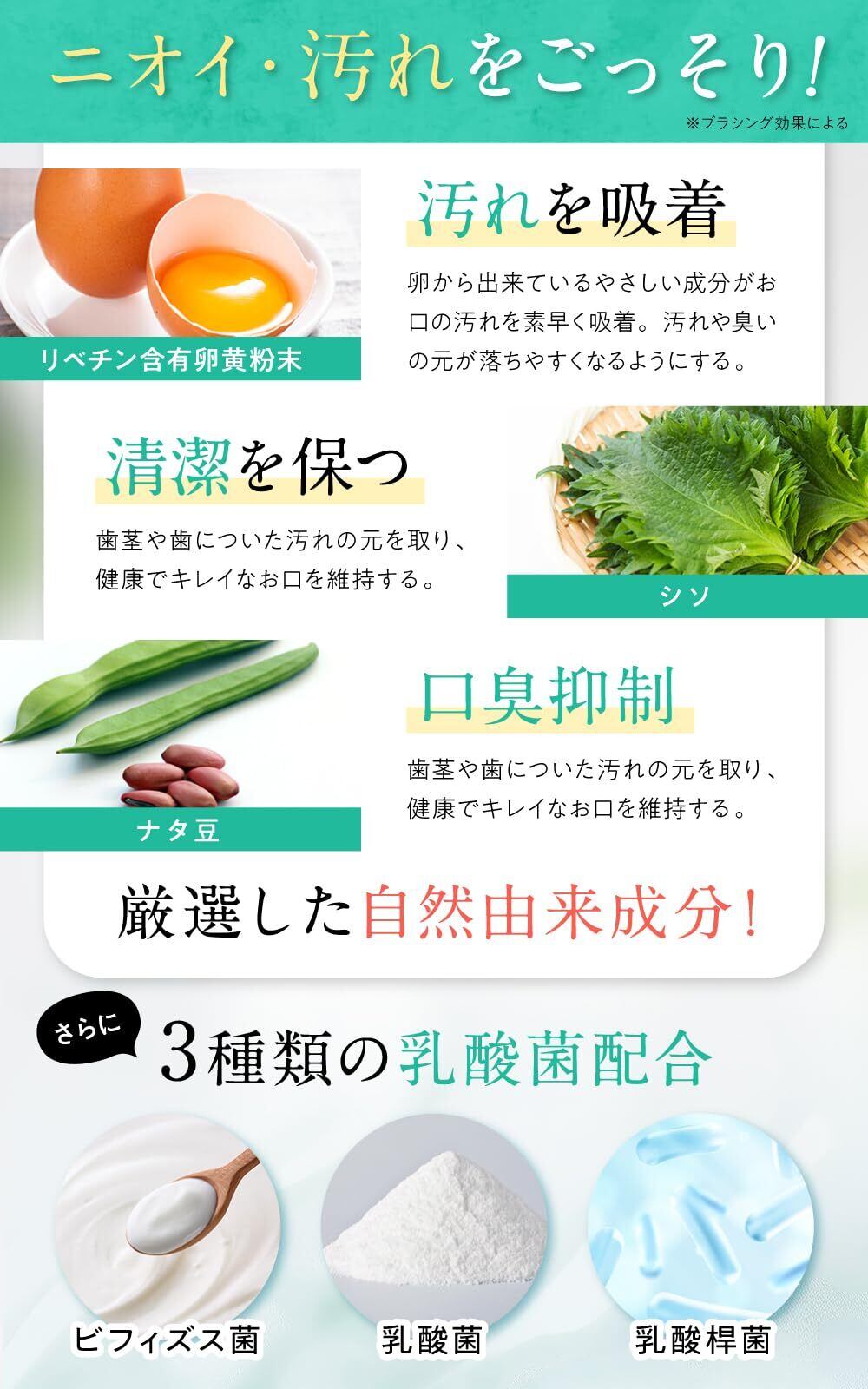商品特長 プラーク除去、口臭除去、歯石除去