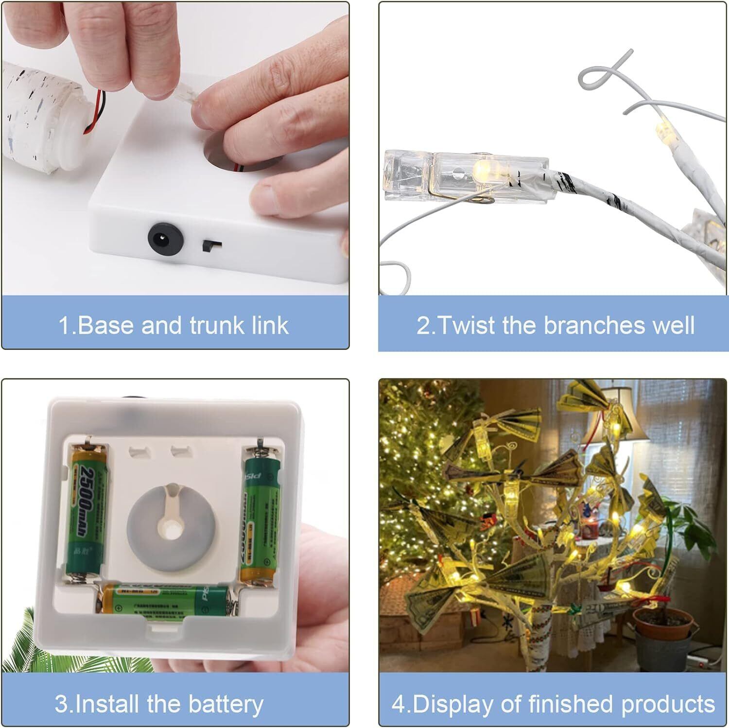 【耐久性のある高品質素材】---曲げられる枝を備えた24個のLEDライトを備えた屋内白樺ツリーライトは、お好みのDIY形状に設計できます。 また、クリップを使用して、ミニギフトカード、手紙、メモ、紙、宝くじ、チケット、現金、ドル、写真、メモなどを表示できます。 さらに、卓上ツリーライトは耐久性があり、低熱なので、点灯中に触れても安全です。 一年中使用できる、春、夏、秋、冬のホリデーデコレーションコレクションに欠かせないアイテムです。