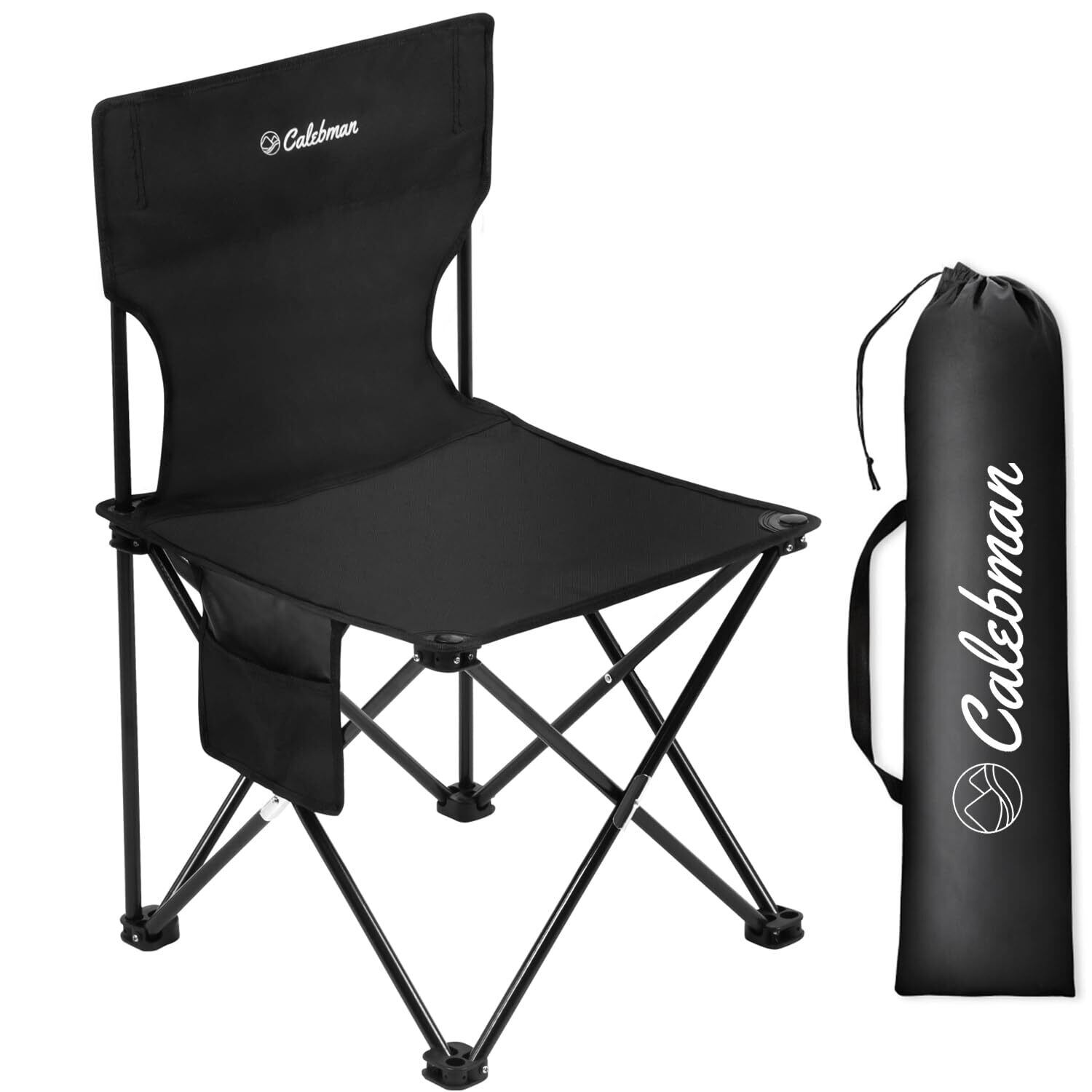 Calebman アウトドアチェア 折りたたみ 【1秒開閉】 超軽量 コンパクト イス 椅子 耐荷重150kg ポケット付き 背もたれ付 収納袋付 釣り 登山 携帯便利 キャンプ椅子 (黒)