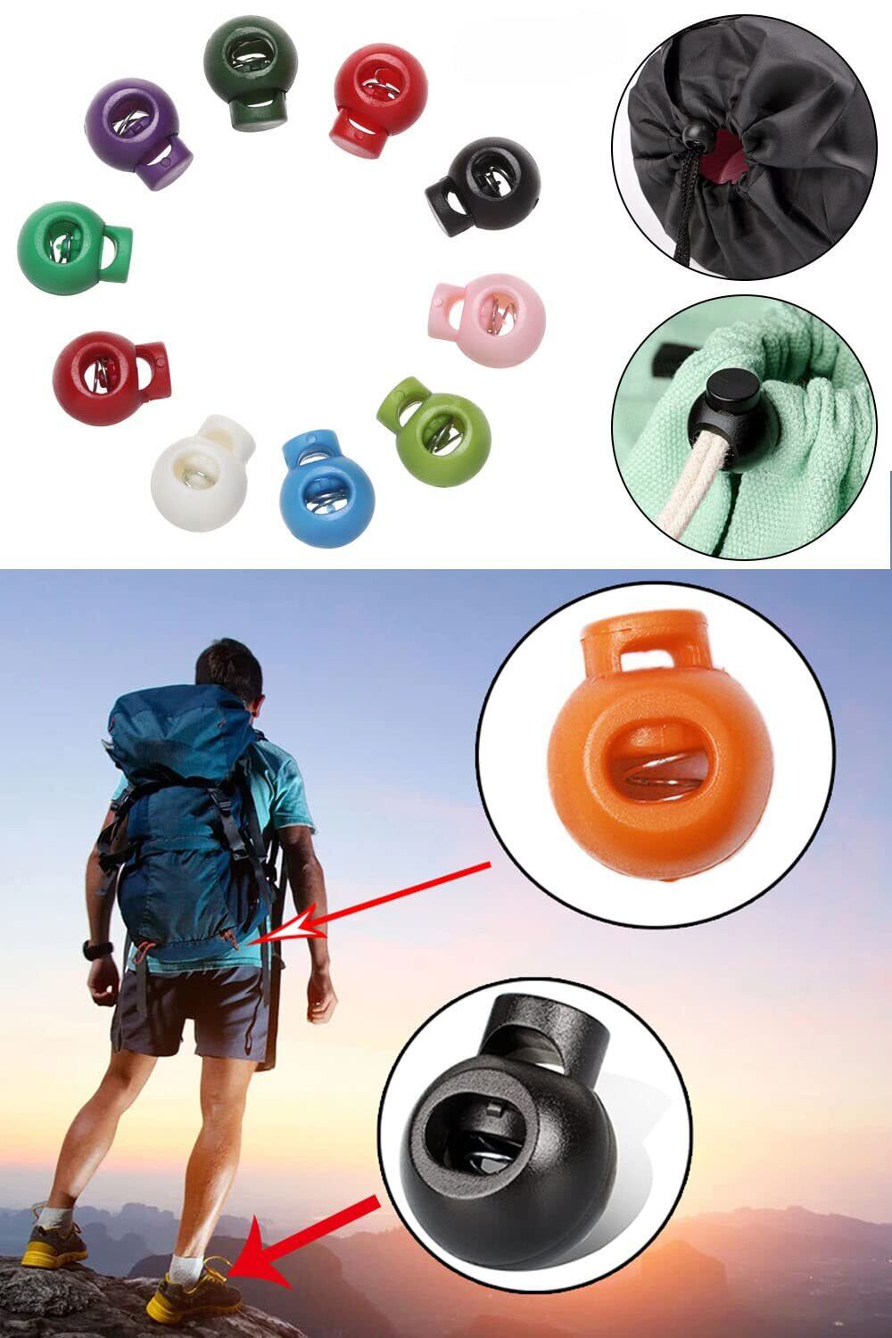 【在庫セール】[YINKE] コードストッパー コードロック ゴム止め ゴム調整バックル ロープ アウトドア 衣類 靴ひも50個入り (カラフル)