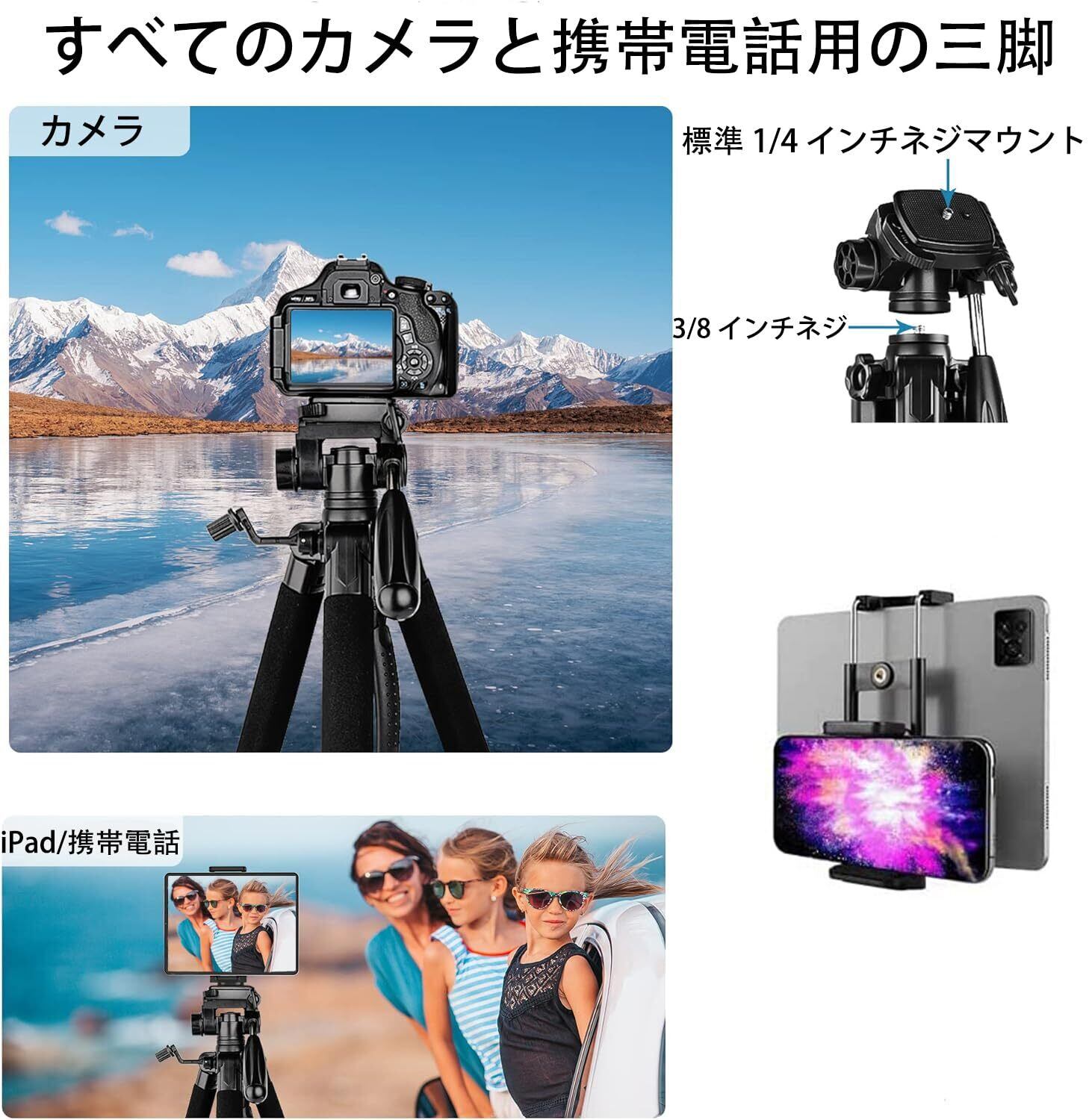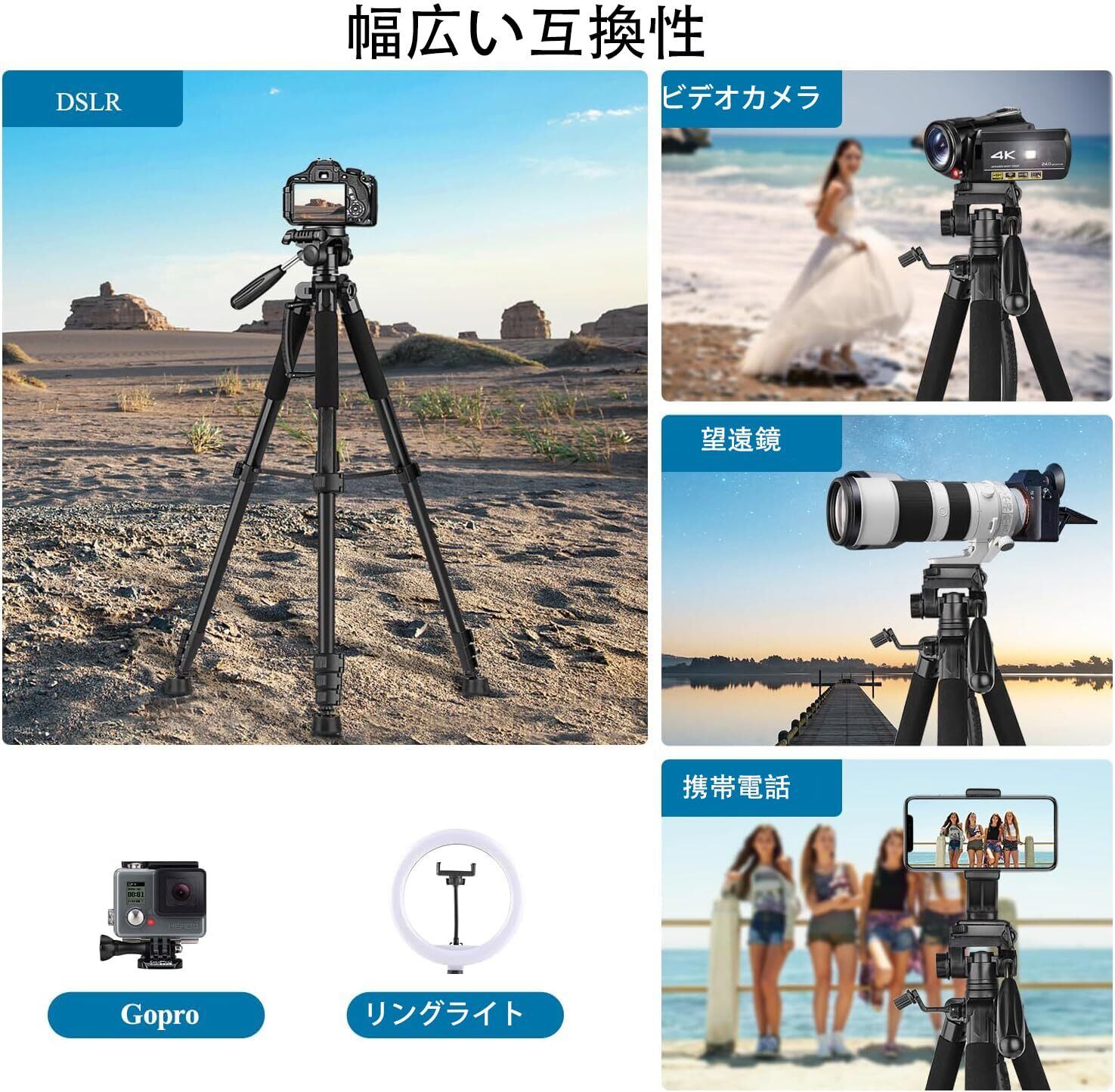 190cm カメラ 三脚 スマホ三脚 3Way雲台 360°回転可能 遠隔撮影リモコン 付き収納袋 パンハンドル クイックシュー対応 一眼レフ/ビデオカメラ/スマホ/タブレット