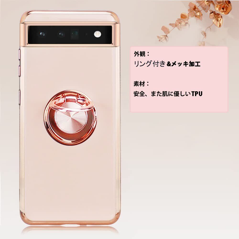 【在庫処分】JOOBOY Google Pixel 6a ケース リング付き Pixel6a カバー メッキ加工 レンズ保護 tpu ソフト ストラップホール付き 耐衝撃 スリム おしゃれ スマホケース 携帯カバー グーグルPixel 6a メッキ加工 カバー (Google Pixel 6a, ピンク)