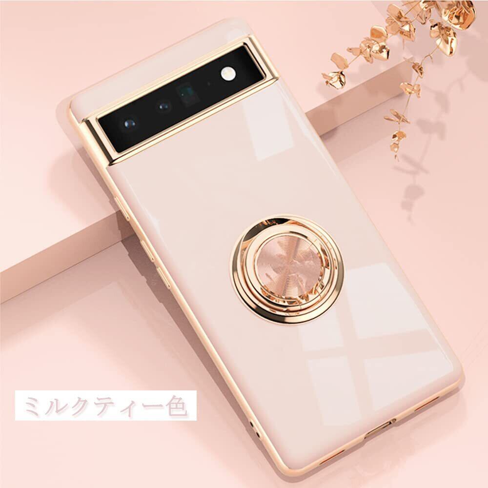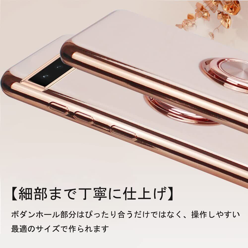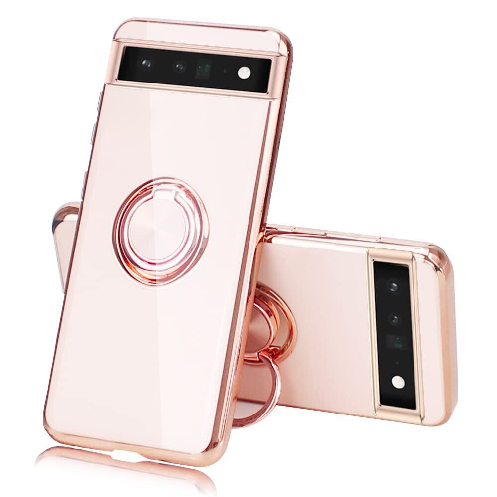 JOOBOY Google Pixel 6a ケース リング付き Pixel6a カバー メッキ加工 レンズ保護 tpu ソフト ストラップホール付き 耐衝撃 スリム おしゃれ スマホケース 携帯カバー グーグルPixel 6a メッキ加工 カバー (Google Pixel 6a, ピンク)