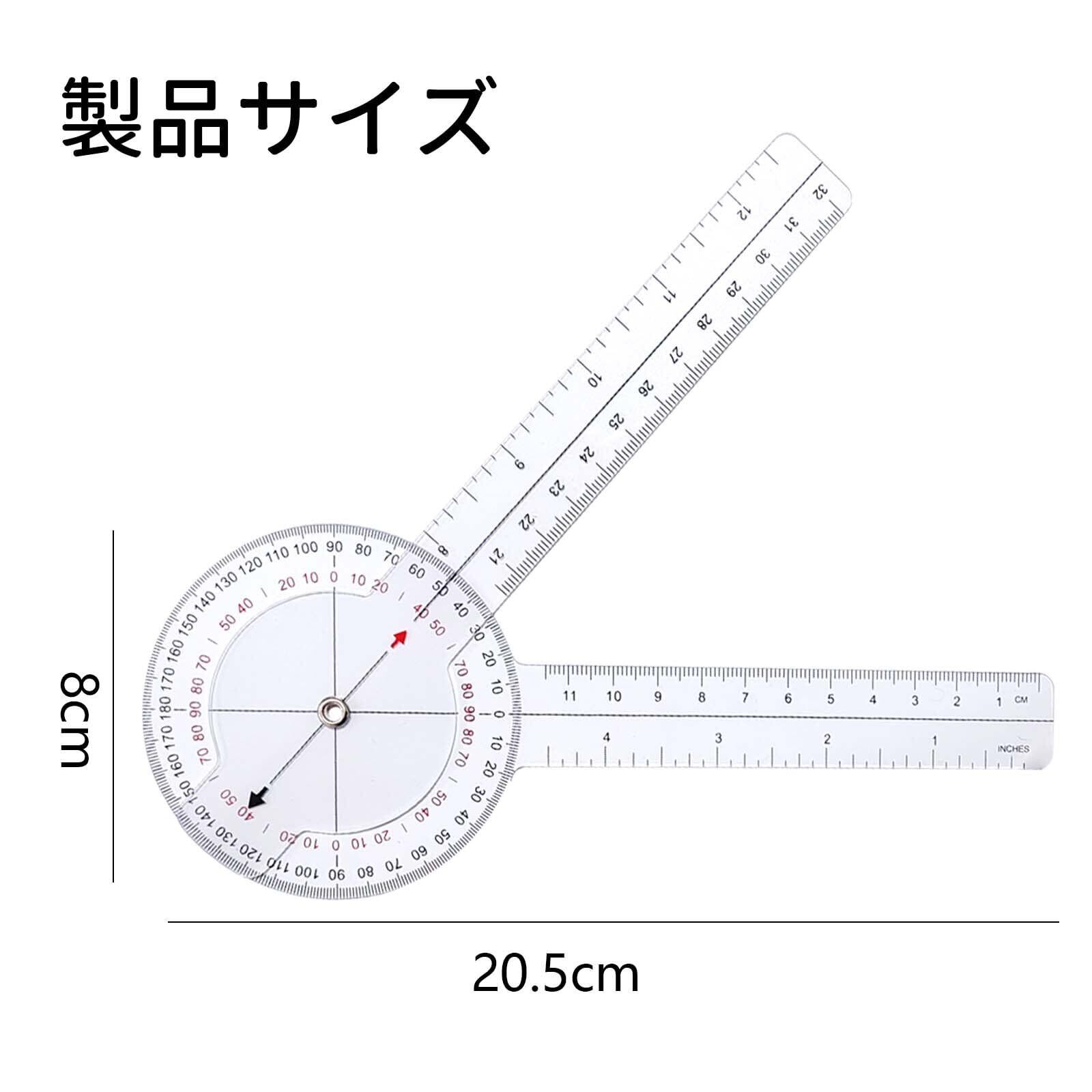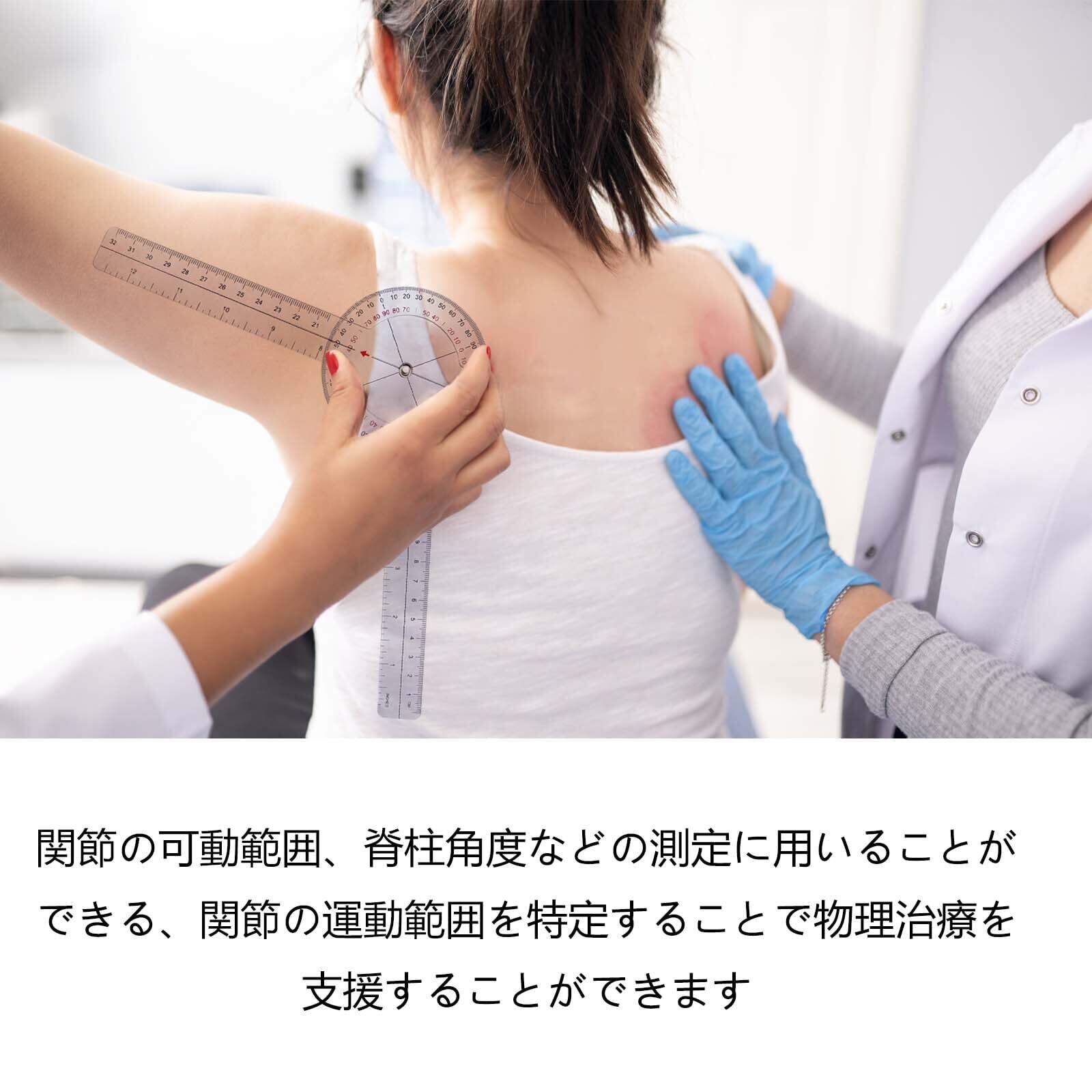 ゴニオメーター 透明 2本 ゴニオメーター 360度 プラスチック ゴニオメーター ゴニオメーター リハビリ 8インチ 分度器 整形外科 角度定規 ボディ 測定 テープ