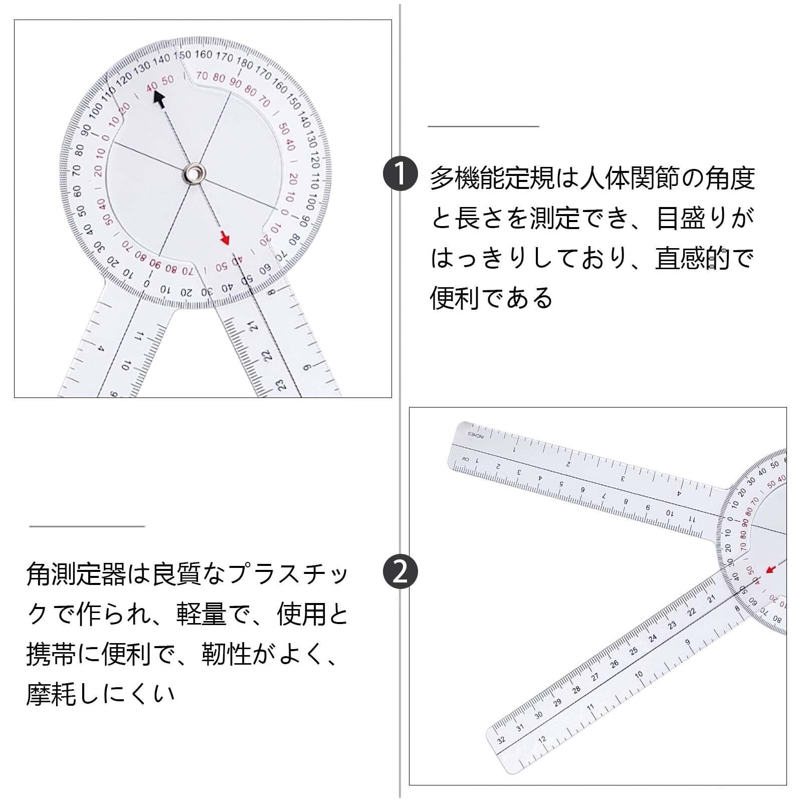 ✯【正確な測定】360度回転可能 | 1度刻みで読み取り値を提供 | 理学療法を支援するために関節の可動域を効果的に決定