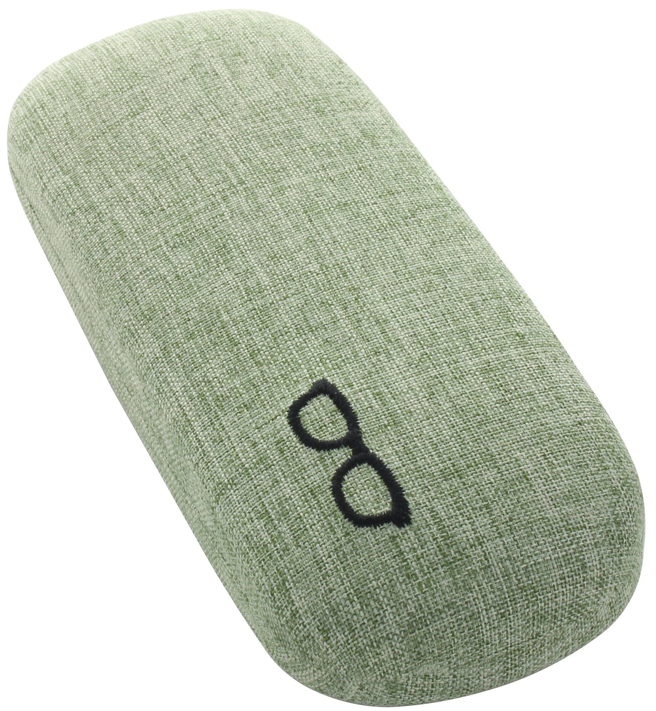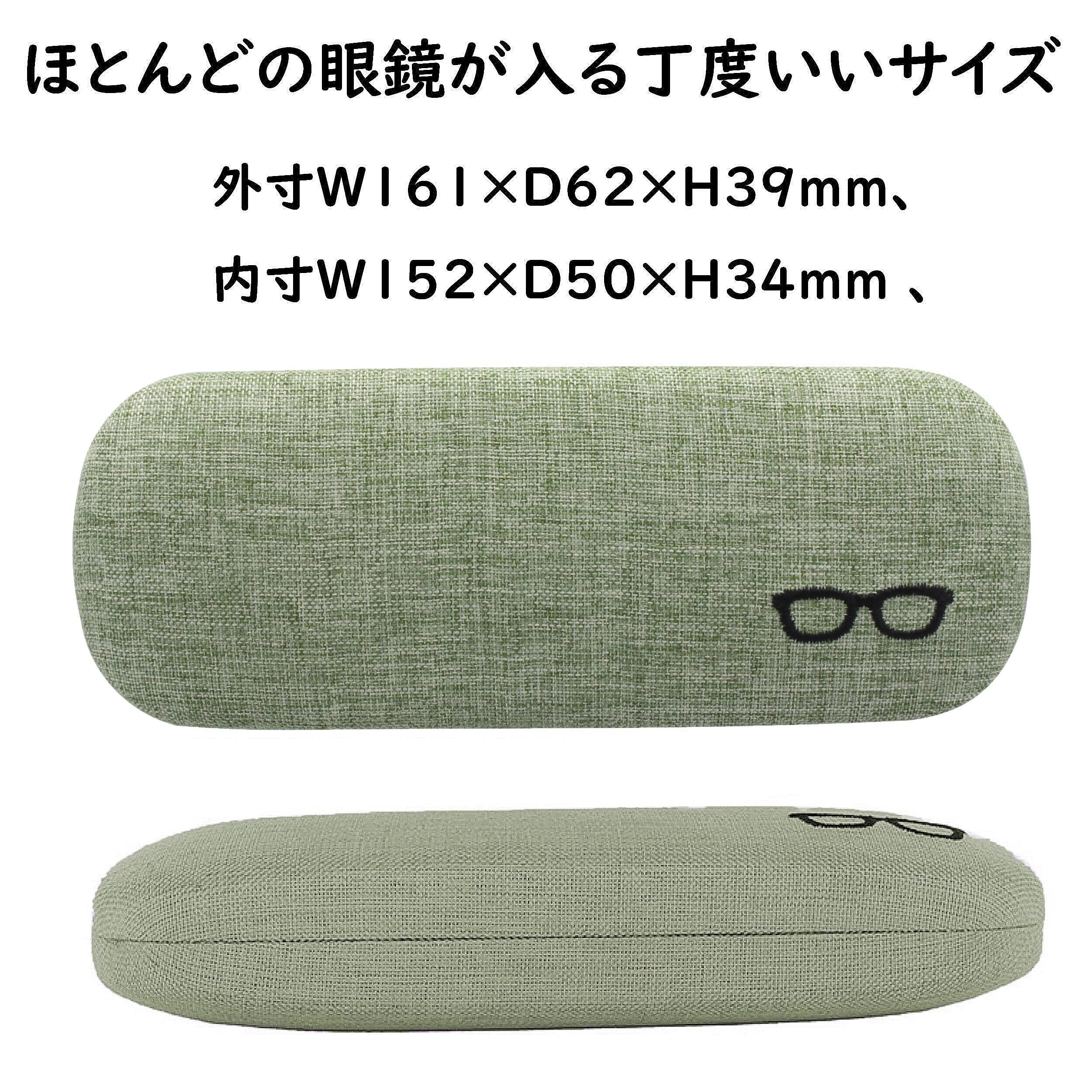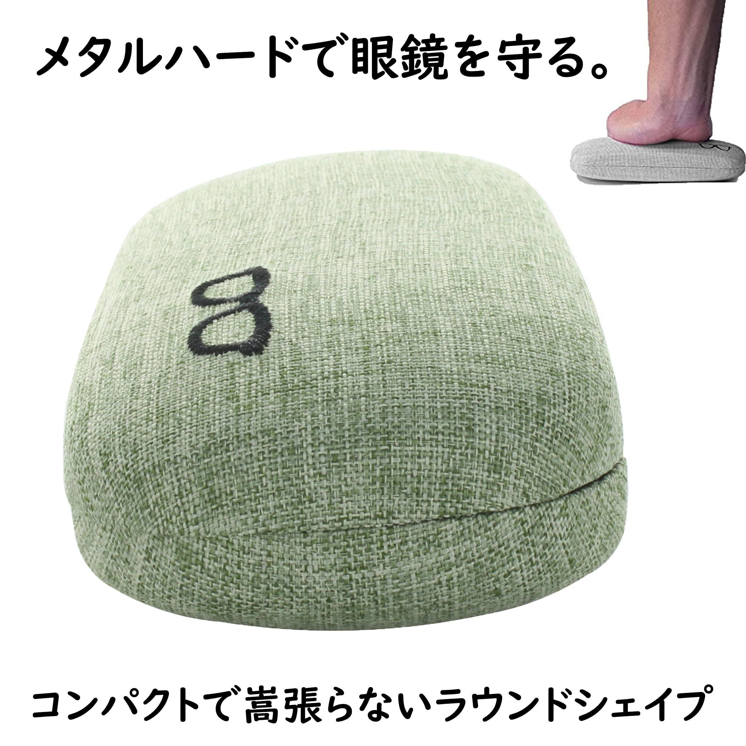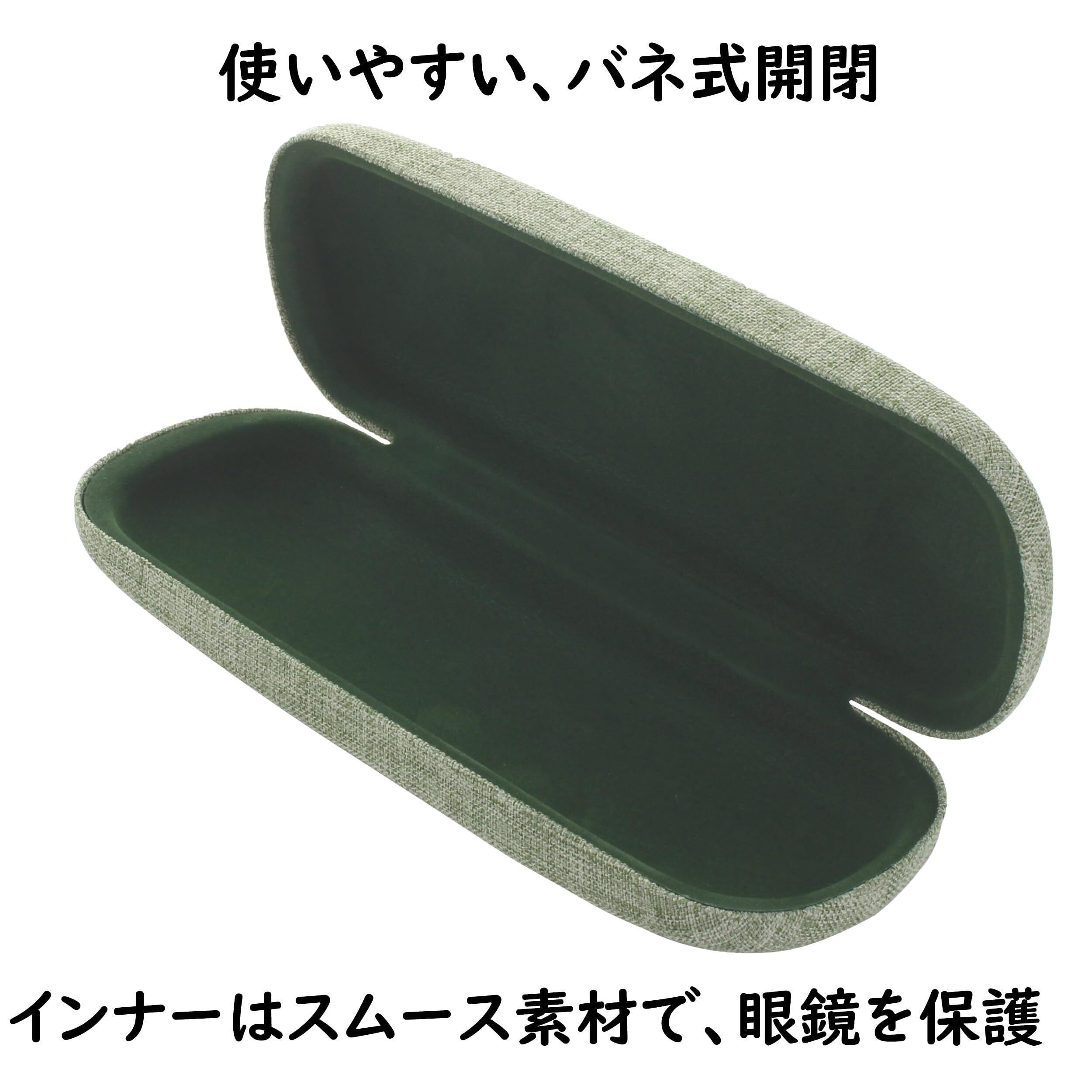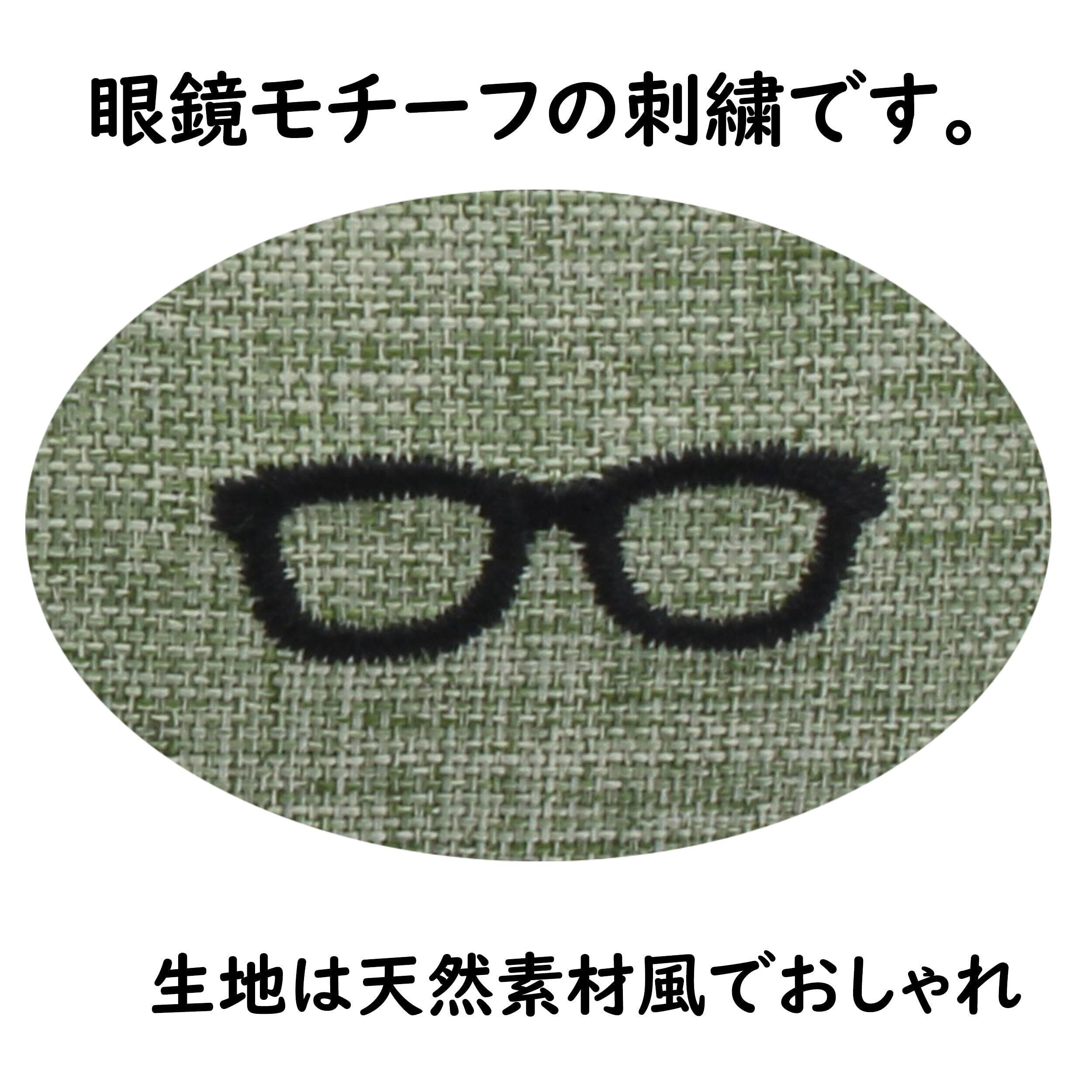 メガネケース メタル ハード ラウンド コンパクト おしゃれ ファブリック 生地 かわいい ワンポイント 眼鏡刺繍モチーフ メンズ レディース 兼用 グリーン 2235-05