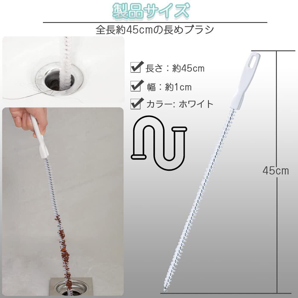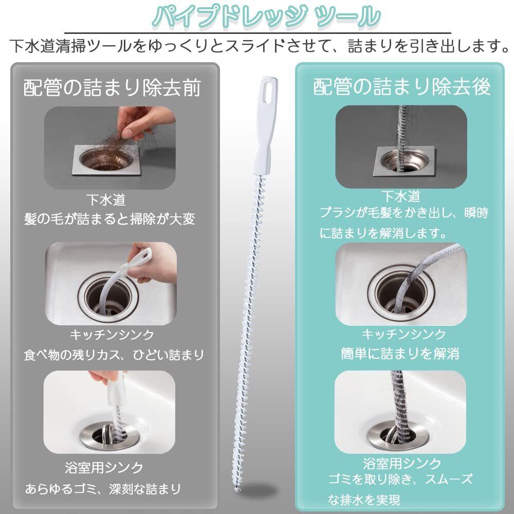 パイプドレッジ ツール パイプブラシ 1本セット 排水管クリーナー ヘアキャッチャー 排水溝詰まり除去 髪の毛 汚れ など掃除 下水管 柔ら 自由に曲げられる クリーニングブラシ 多機能 浴室/浴槽/洗面台/キッチン配管/トイレの排水口用 お手入れが簡単 保管に便利 掃除用具 (ホワイト)