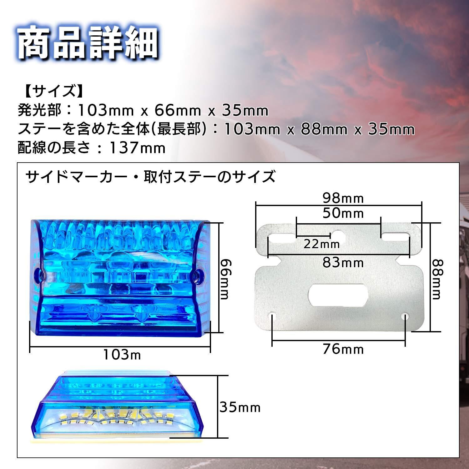 【数量限定】Meliore LED サイドマーカー 24V トラック デコトラ ダウン アンダー ライト デイライト ランプ 路肩灯 防水 カスタム ドレスアップ パーツ 大型車 汎用 社外 品 青 ブルー 10個
