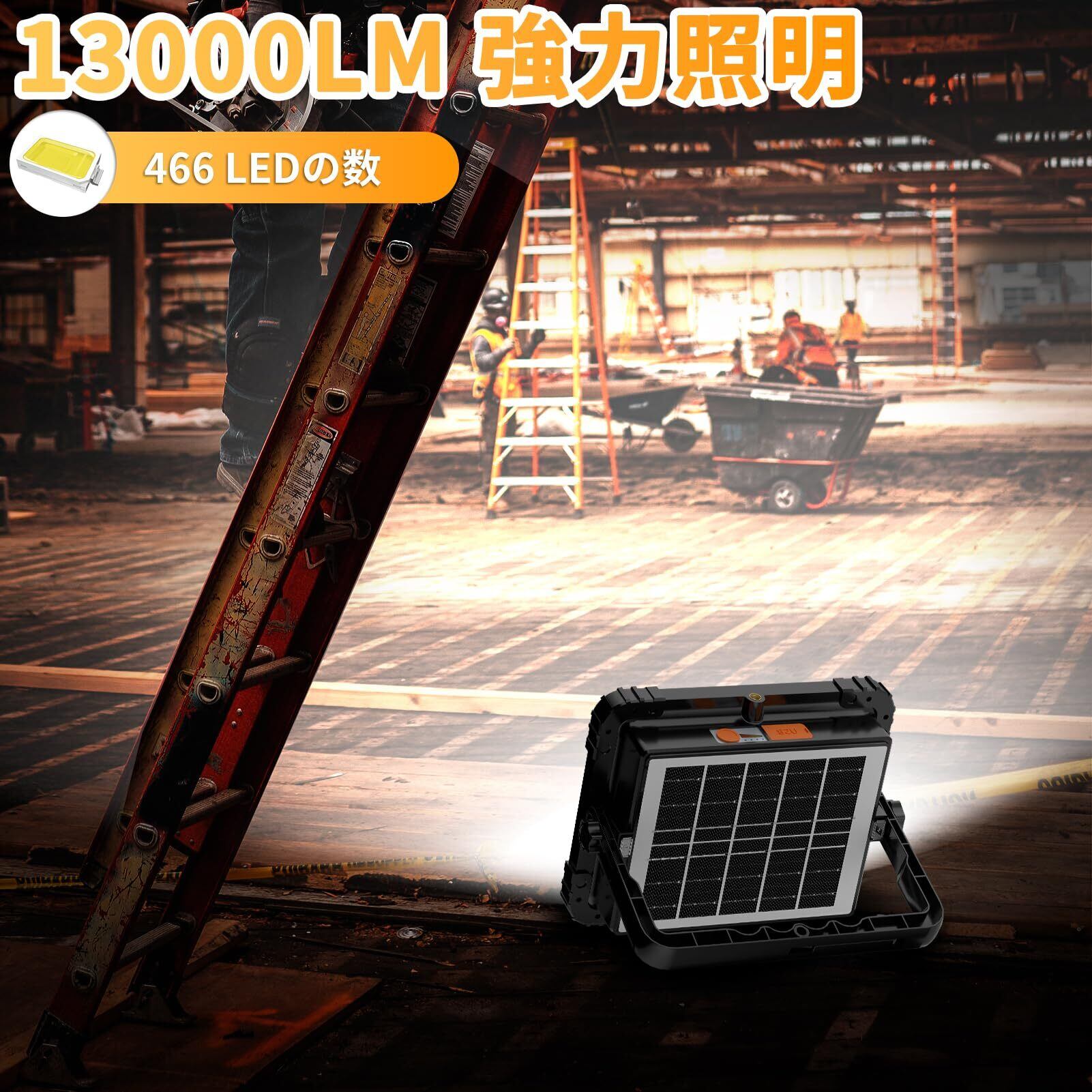 【人気商品】LED投光器 充電式 作業灯 投光器 led 屋外 12000mAH大容量 【超高輝型466個LEDチップ】 ledライト 集魚灯 充電式 100W 13000LM ソーラー充電/Type-c充電 屋外投光器便携式 5色切替 太陽光発電 IP66防水 磁気設計 アウトドア キャンプ 夜釣り登山 防災 緊急 夜間工事 停電対応 地震対策 車の修理 PSE認証済み…