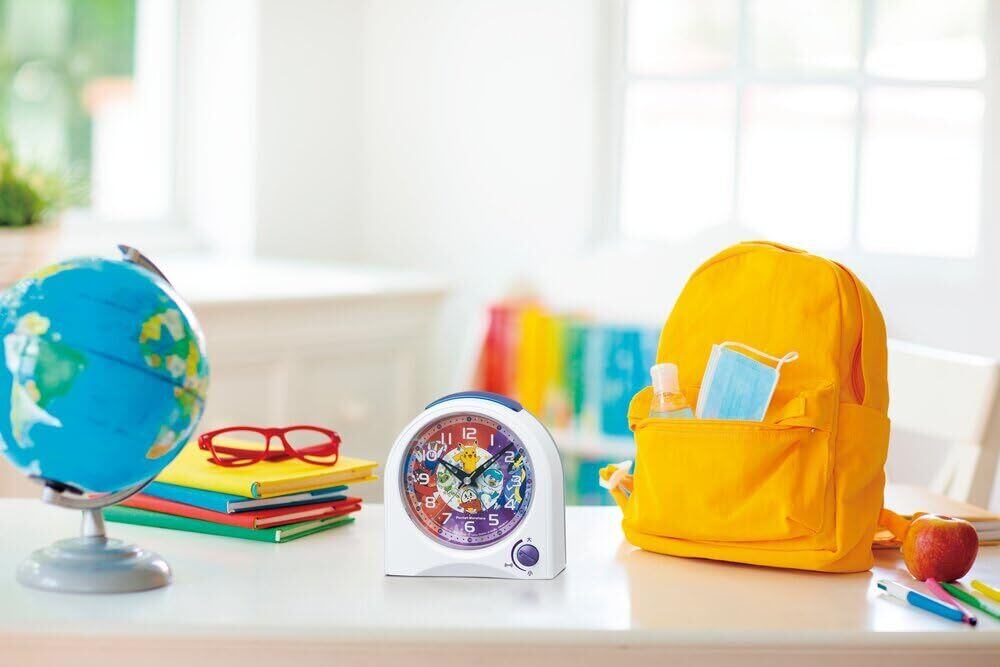 【在庫処分】セイコークロック 目覚まし時計 置き時計 キャラクター ポケットモンスター 白 115×115×55mm CQ425W