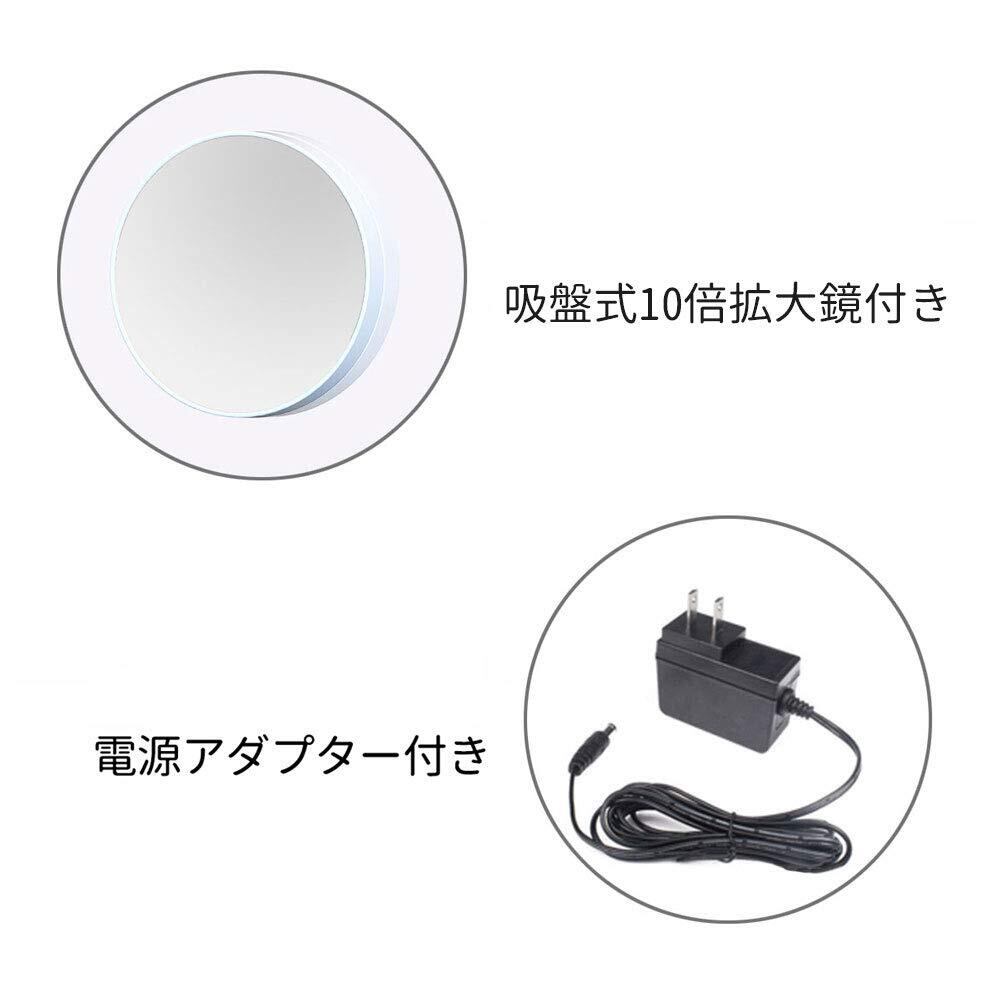 10倍拡大鏡・明るさメモリー機能:吸盤式10倍拡大鏡が付き、毛穴の状態やアイラインのズレもチェックでき、肌の細やかい状況とスキンケアをしっかり把握します。視力が低下して見えづらい方に、メガネがなくてもメイクできます、メイクも便利です。明るさメモリー機能により一度消してもお好みの明るさで再点灯できます。