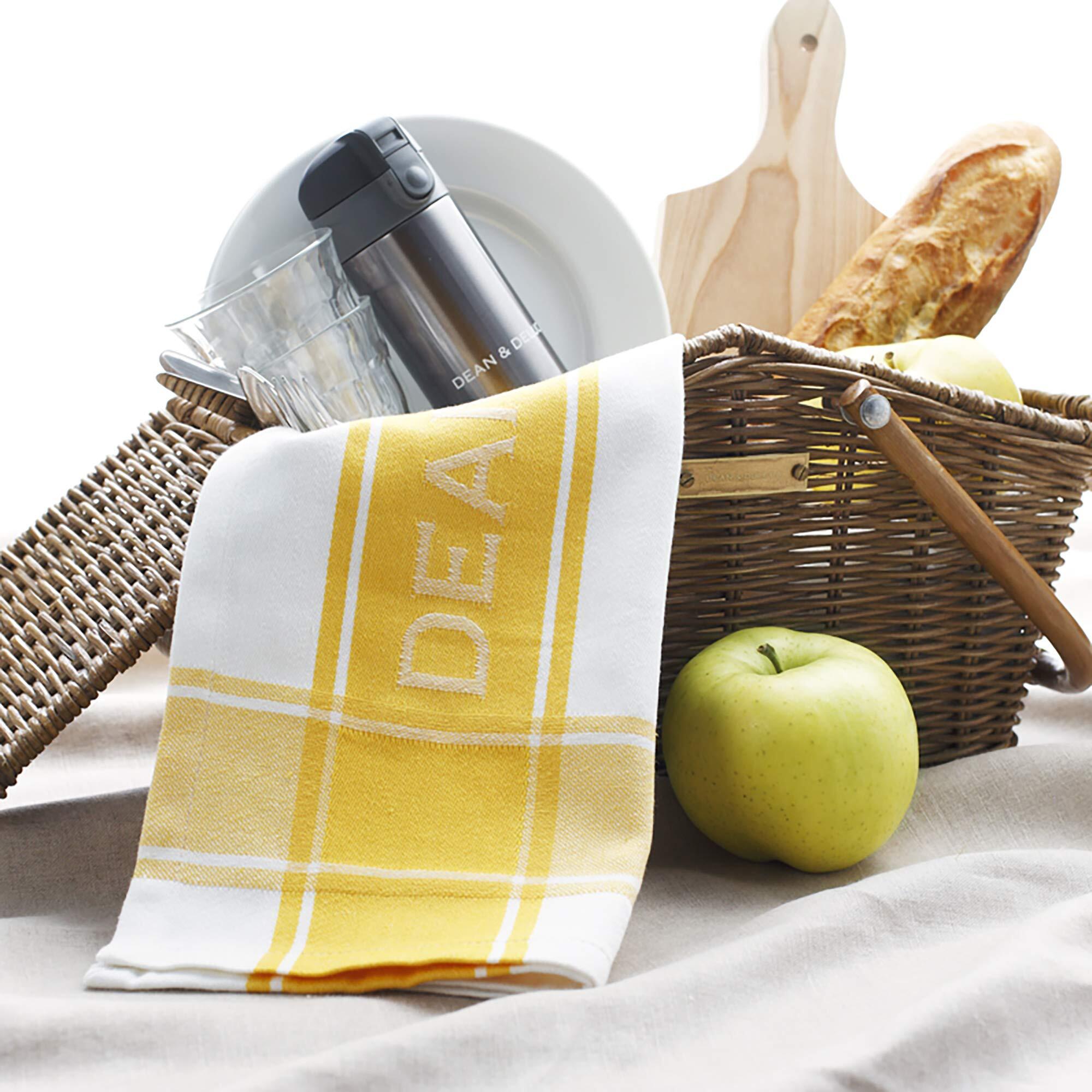 DEAN & DELUCA(ディーンアンドデルーカ) ティータオル イエロー 大判 ループ付き ロゴ入り キッチンタオル ふきん 70×50cm