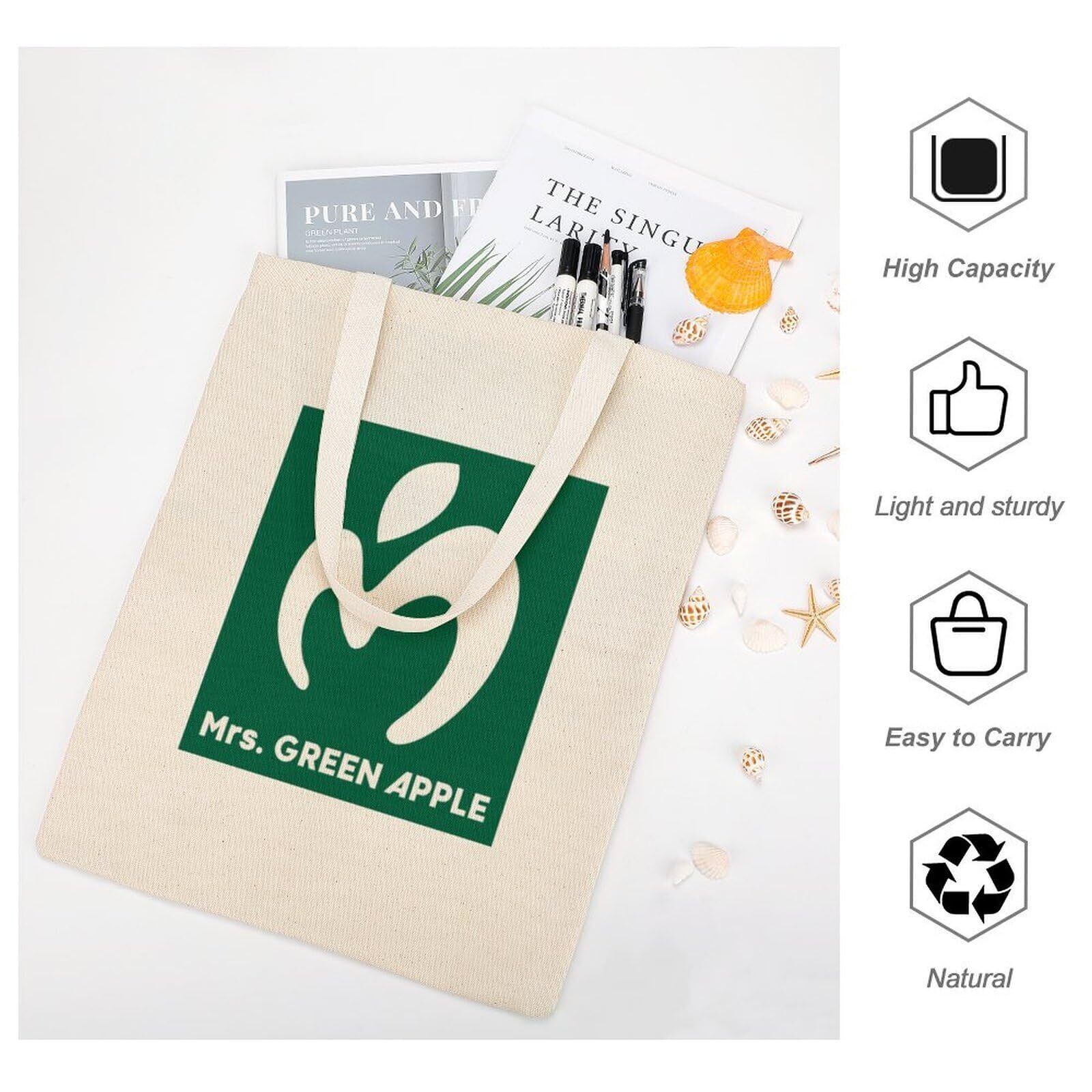ミセス・グリーン・アップル キャンバストート バッグ 可愛い 片面印刷 帆布 キャリングケース ハンドバッグ 通勤 通学 旅行ショピング アルバイトバッグ 推し ギフト