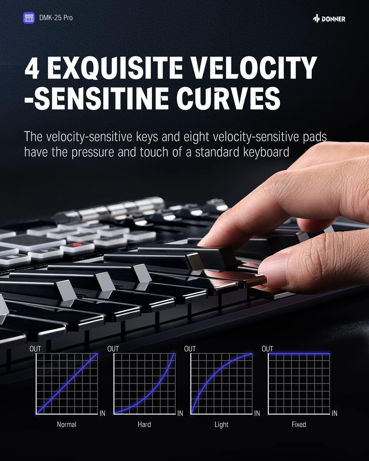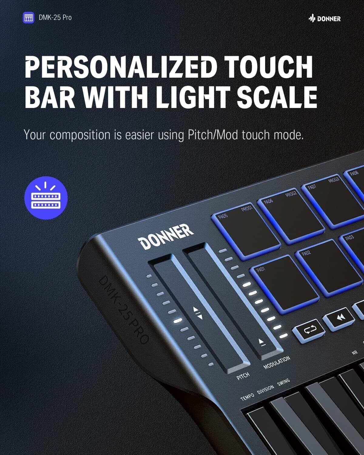 Donner USB MIDI キーボード コントローラー 25鍵 ベロシティ対応 タッチ式スライダー OLEDスクリーン バックライト付パッド 音楽制作 Mac・PC対応 日本語説明書 ブラック DMK-25 PRO