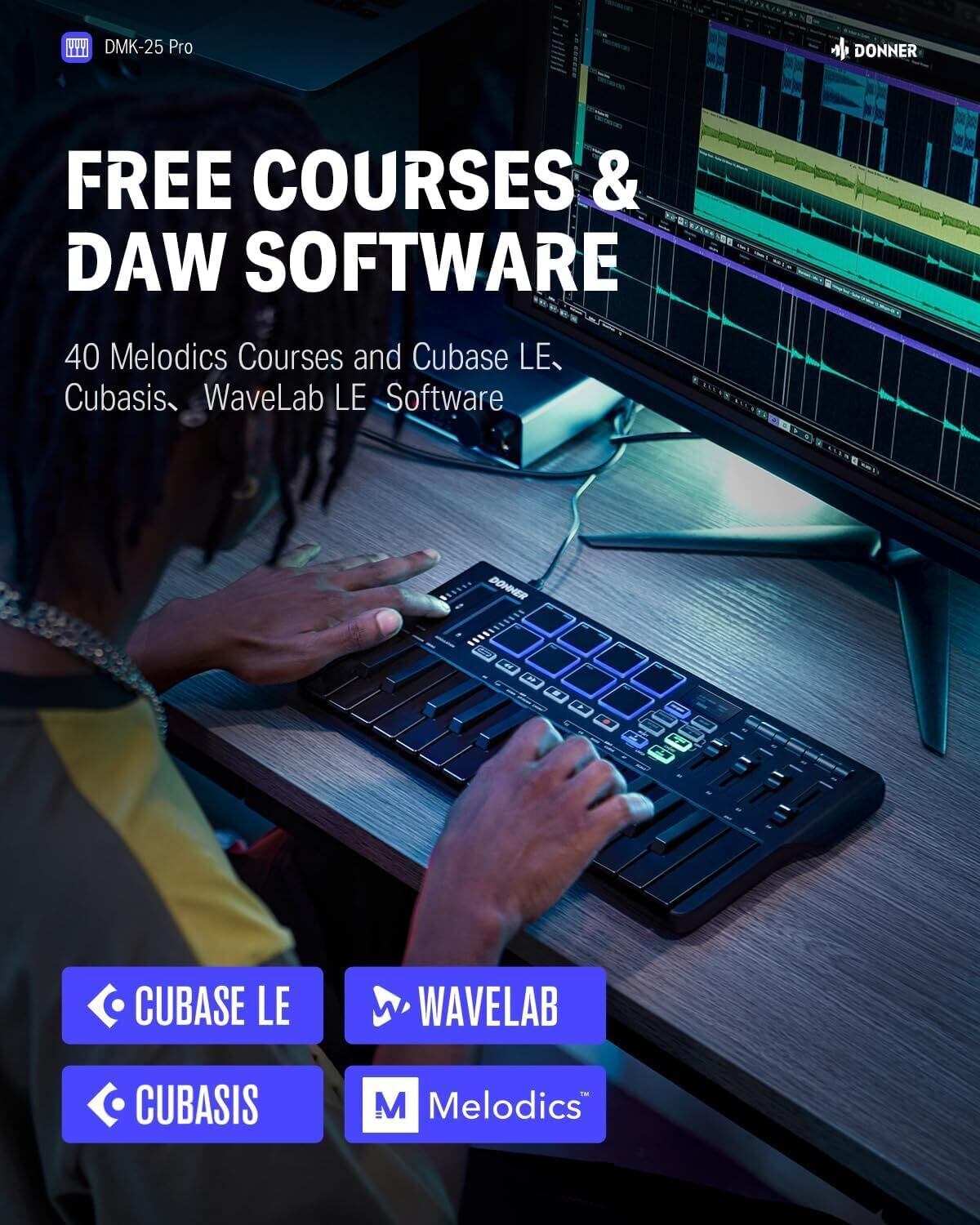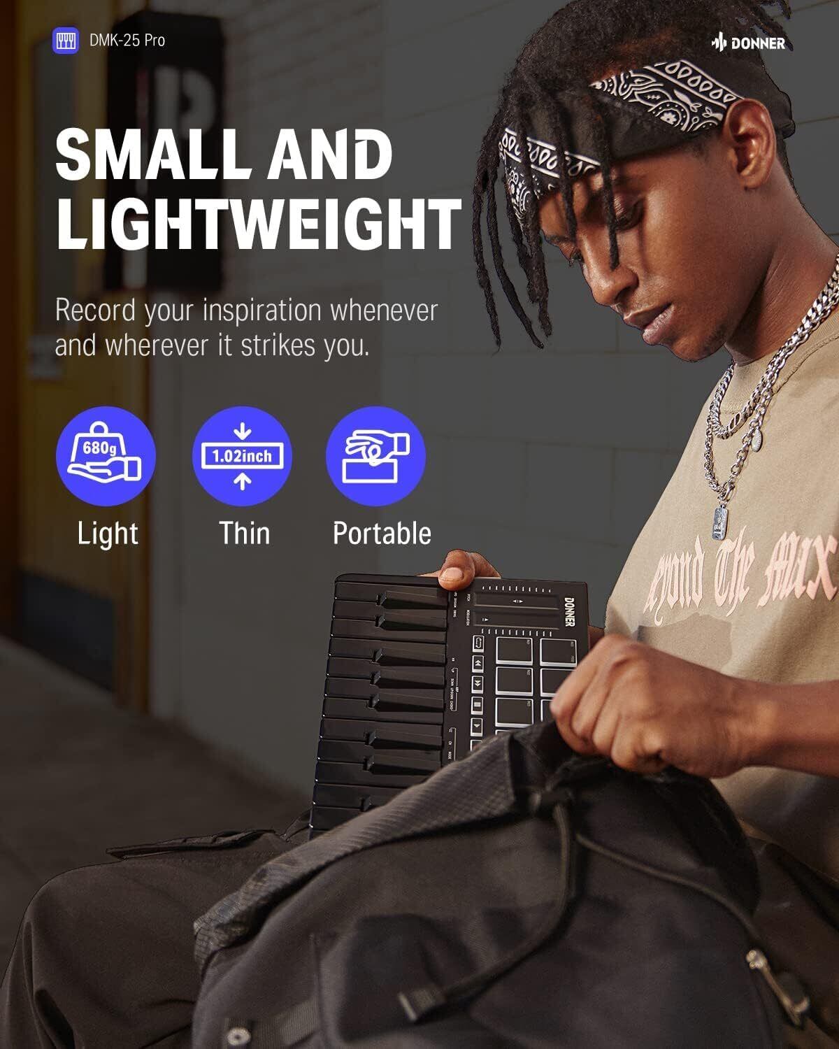 ️【場所を問わず音楽を作れる】Donner DMK-25Proはわずか68gです。いつでもどこでもインスピレーションを記録することを簡単にします。USBケーブル1本の接続で、Mac/Win/iPadにすべて対応。さらにパワフルなDAWソフトウェアCubase LEが付属します。詳しくは、Najiejpカスタマーサポートまでお気軽にお問い合わせください。
