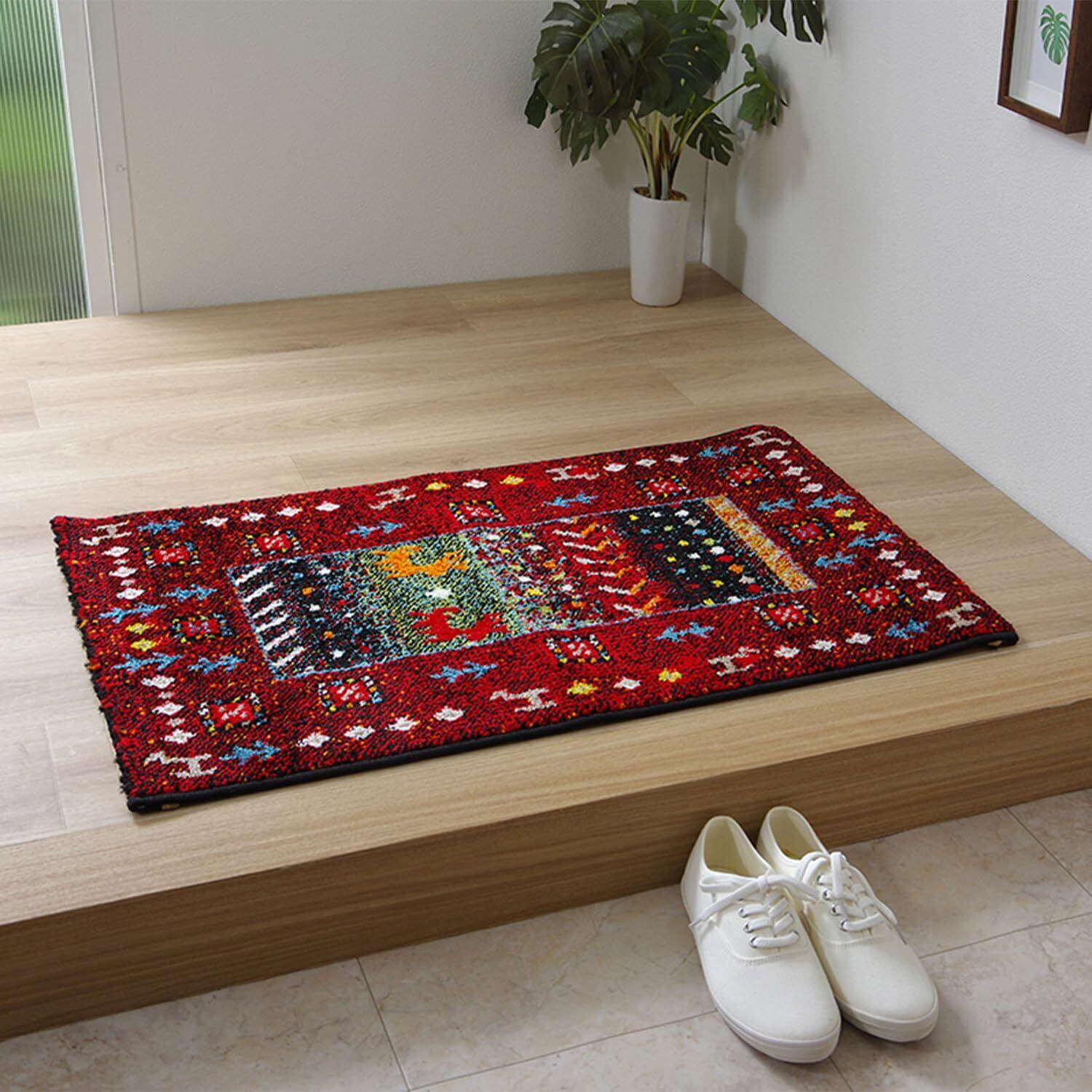 【新着商品】イケヒコ 玄関 選べる マット ラグ ウィルトン 単品 イビサ レッド 約50×80cm 厚み 約15mm トルコ製 へたりにくい 耐久性 弾力性 抗菌防臭 消臭 ギャベ柄 エレガント 洗濯不可 おしゃれ ふわふわ #1311190241701