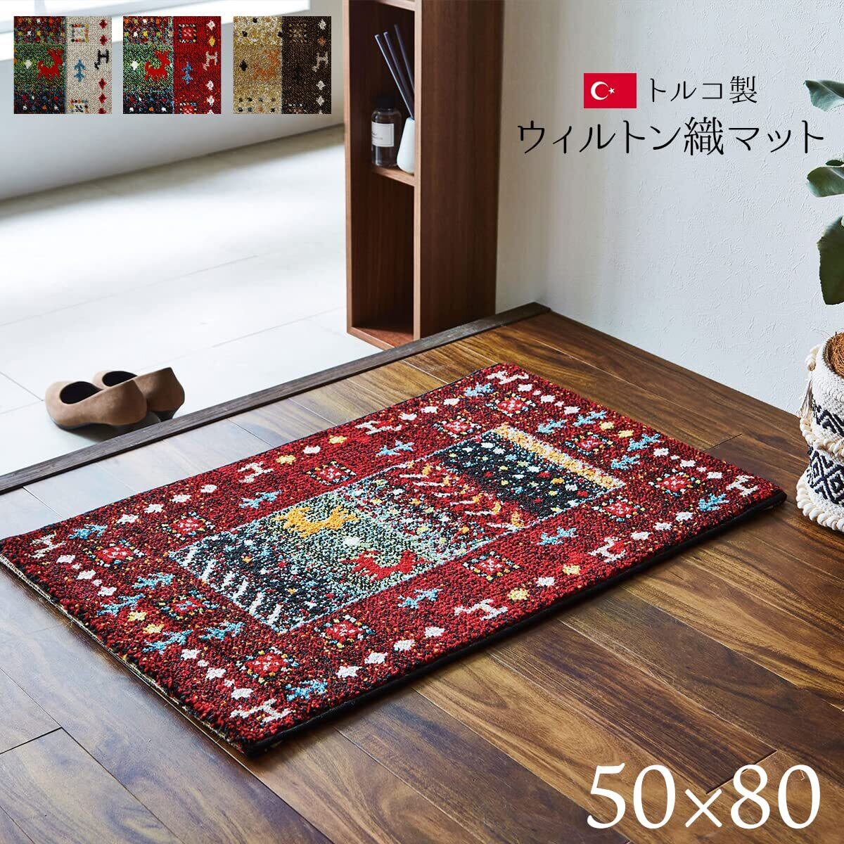 イケヒコ 玄関 選べる マット ラグ ウィルトン 単品 イビサ レッド 約50×80cm 厚み 約15mm トルコ製 へたりにくい 耐久性 弾力性 抗菌防臭 消臭 ギャベ柄 エレガント 洗濯不可 おしゃれ ふわふわ #1311190241701