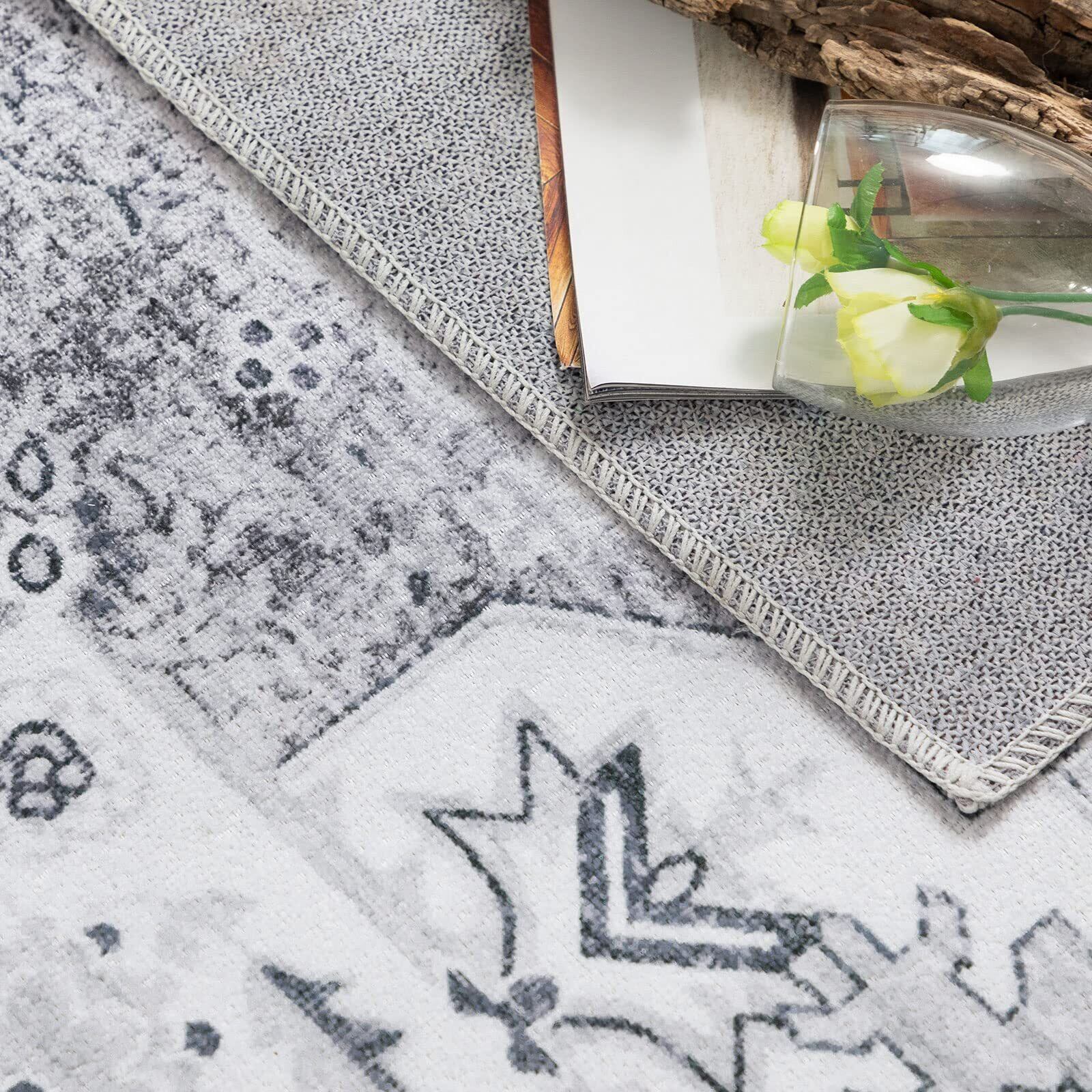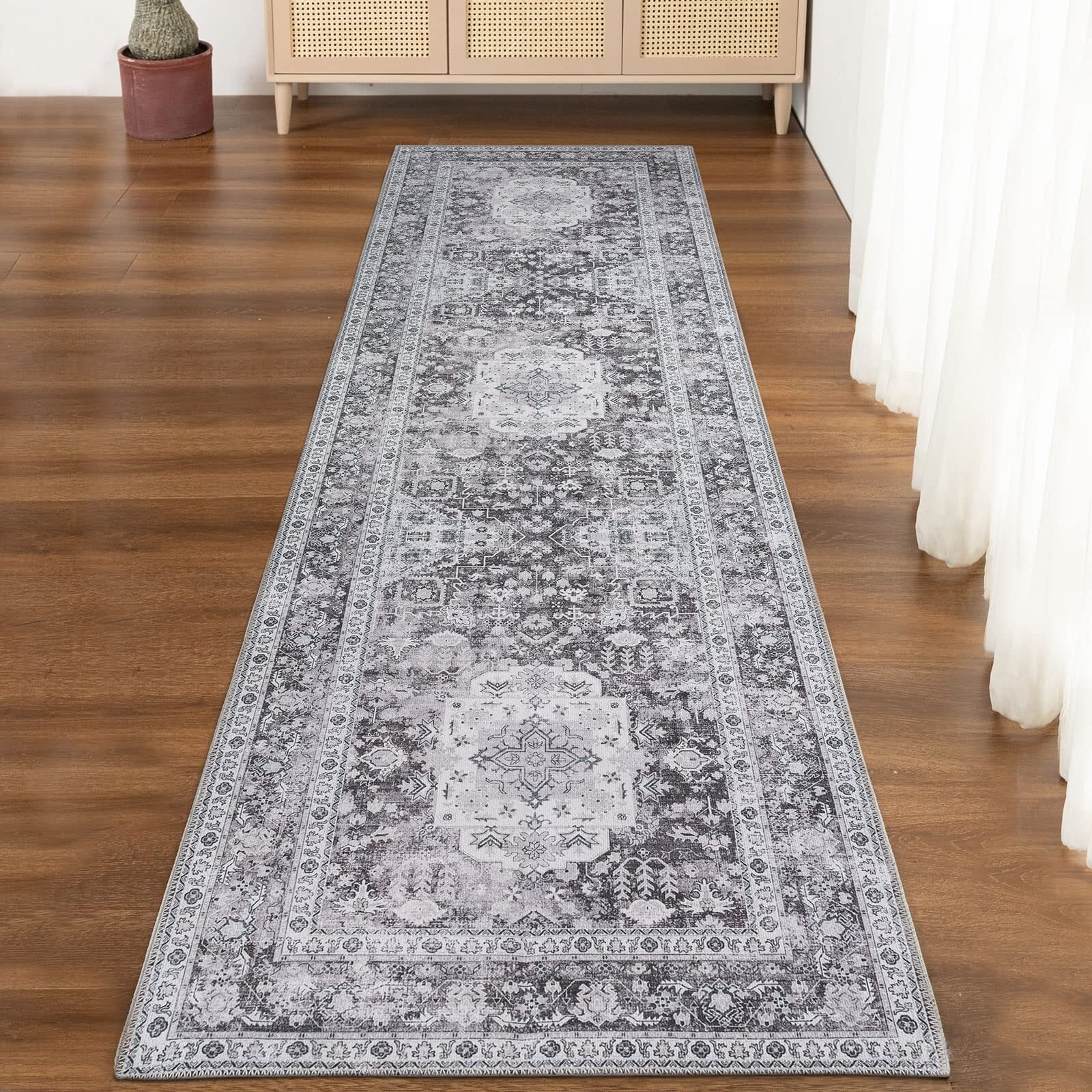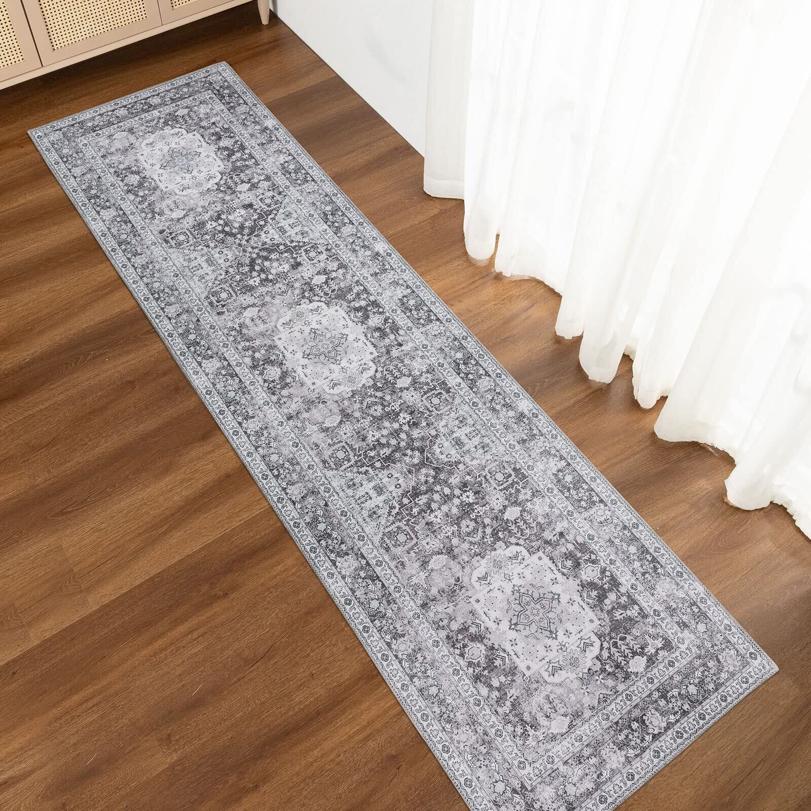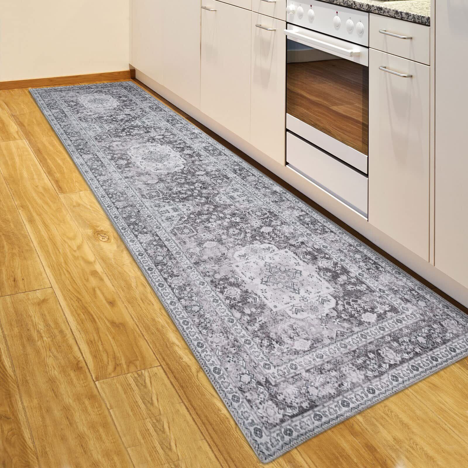 DECOMALL キッチンマット 240 洗える 台所マット おしゃれ ペルシャ風 ラグ マット 60x240CM 廊下 カーペット オールシーズン 滑り止め グレー 防ダニ 防臭 床暖房対応