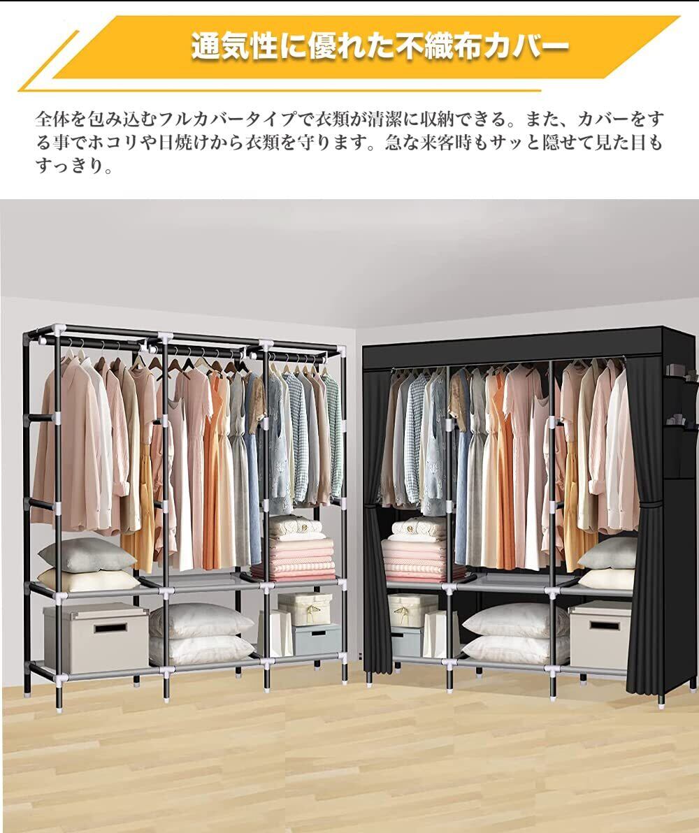 【抜群通気性があるワードローブ カバー付き】豊富な収納スペースがあり、衣類などをまるごと収納出来、カバーで隠せばお部屋がすっきりします。隠しカーテンは不織布なので通気性が良いです。また、カバーをする事でホコリや日焼けから衣類を守ります。