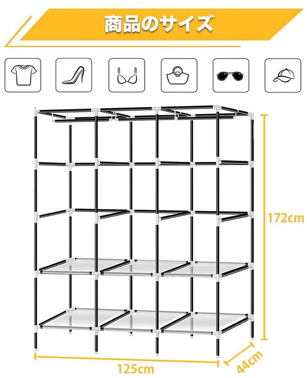 【組み立て簡単、女性一人でもOK】女性の方は一人でも簡単で楽に組み立てできます。(日本語取扱説明書付き)パイプの長さは同じで、部品を間違えることなく、スチールパイプをジョイントに差し込むだけで、組み立てできます、カバーがラックに覆うだけ!組立式収納棚は強固に改良しました。防水の厚や通気性の良い不織布、強化プラスチックの接続口。
