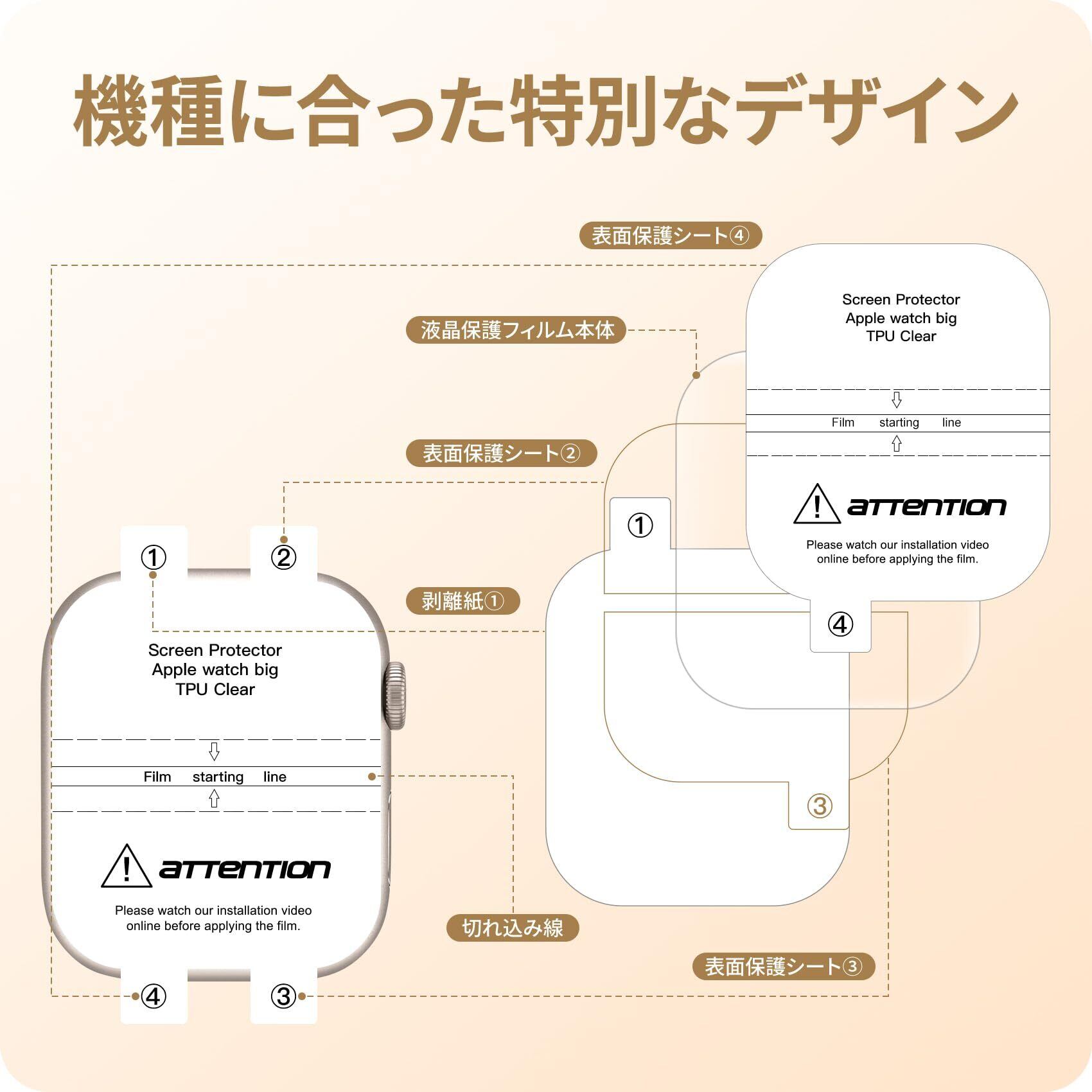 「高透過率&高感度タッチ」高透過率を持つ極薄TPU素材製、フィルムの装着感はゼロで、高い透明感Apple Watch画面の精細さを保ちます。高い品質なTPUで優れたタッチ感を実現します。