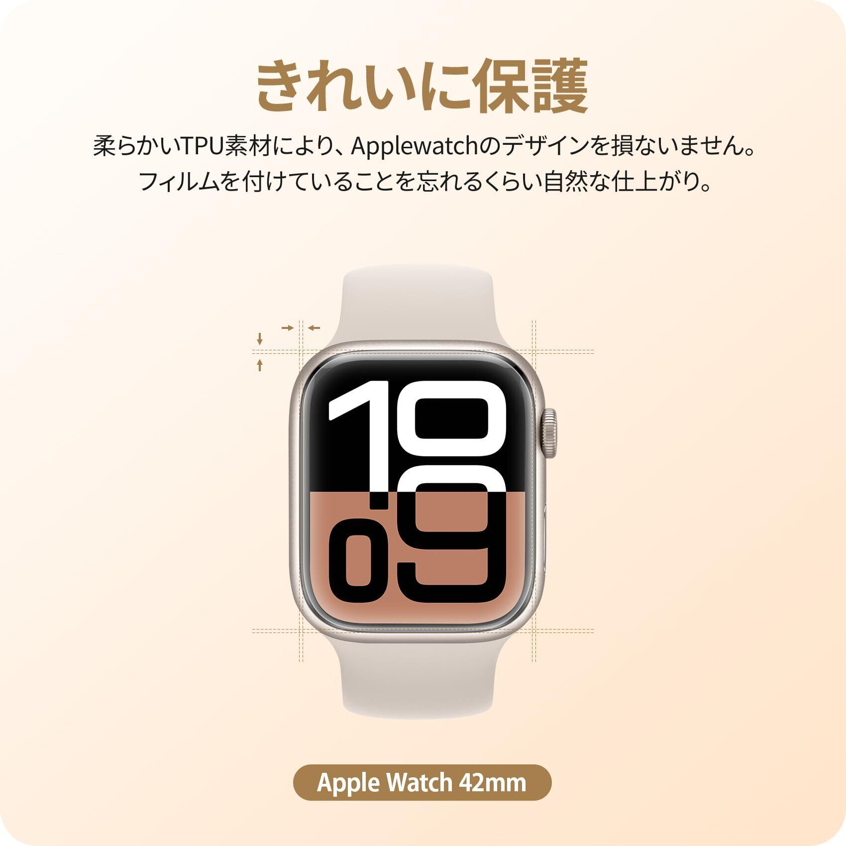 「対応機種」Apple Watch series 10 42mm 用 「ほどよいサイズデザイン:apple watch本体の縁まで適度なスペースを残すデザインとなっており、フィルムの剥がれや浮き上がりを防止し、apple watchケースと干渉せずに快適に使えます。」