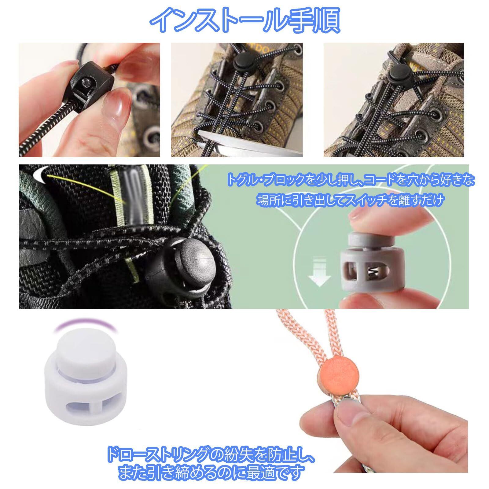 【使いやすい】 コードストッパーはスウェットパンツやパーカーに使用して、また引き締めるのに最適です、トグル・ブロックを少し押し、コードを穴から好きな場所に引き出してスイッチを離すだけ。