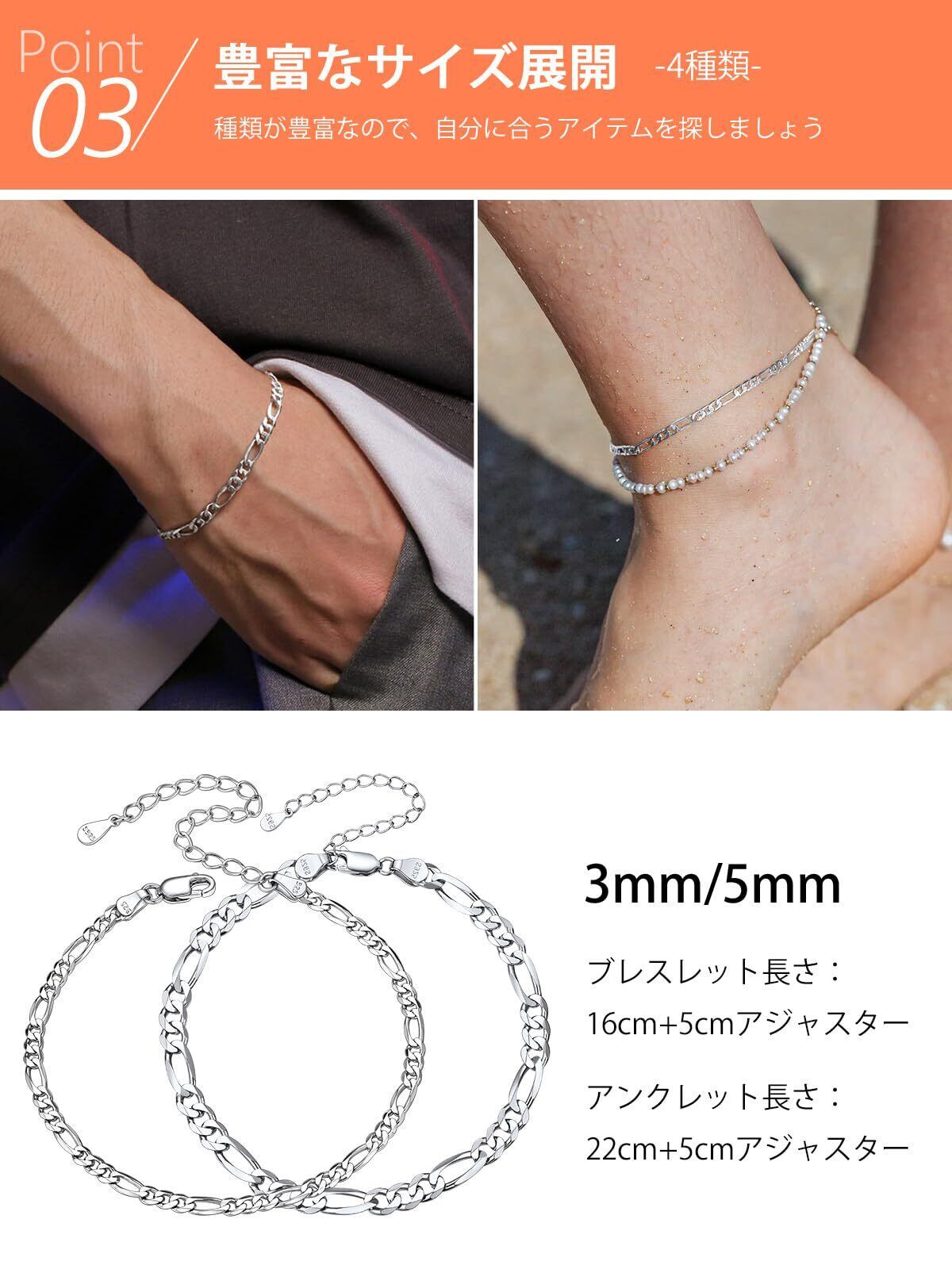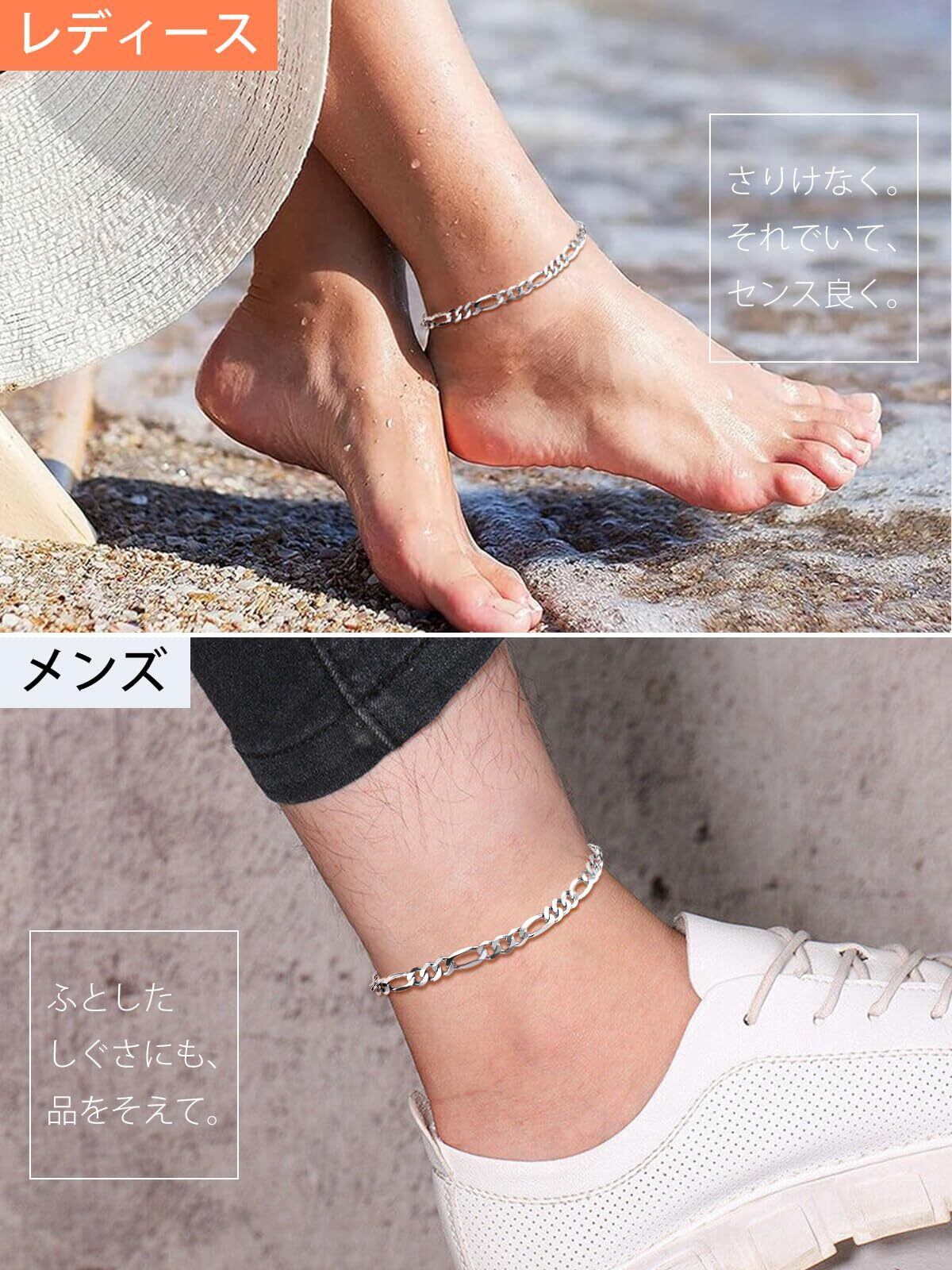 【2022最新】Silvora シルバー925 アンクレット レディース 人気 フィガロチェーン メンズ 22cm+5cm 幅5mm シンプル アクセサリー