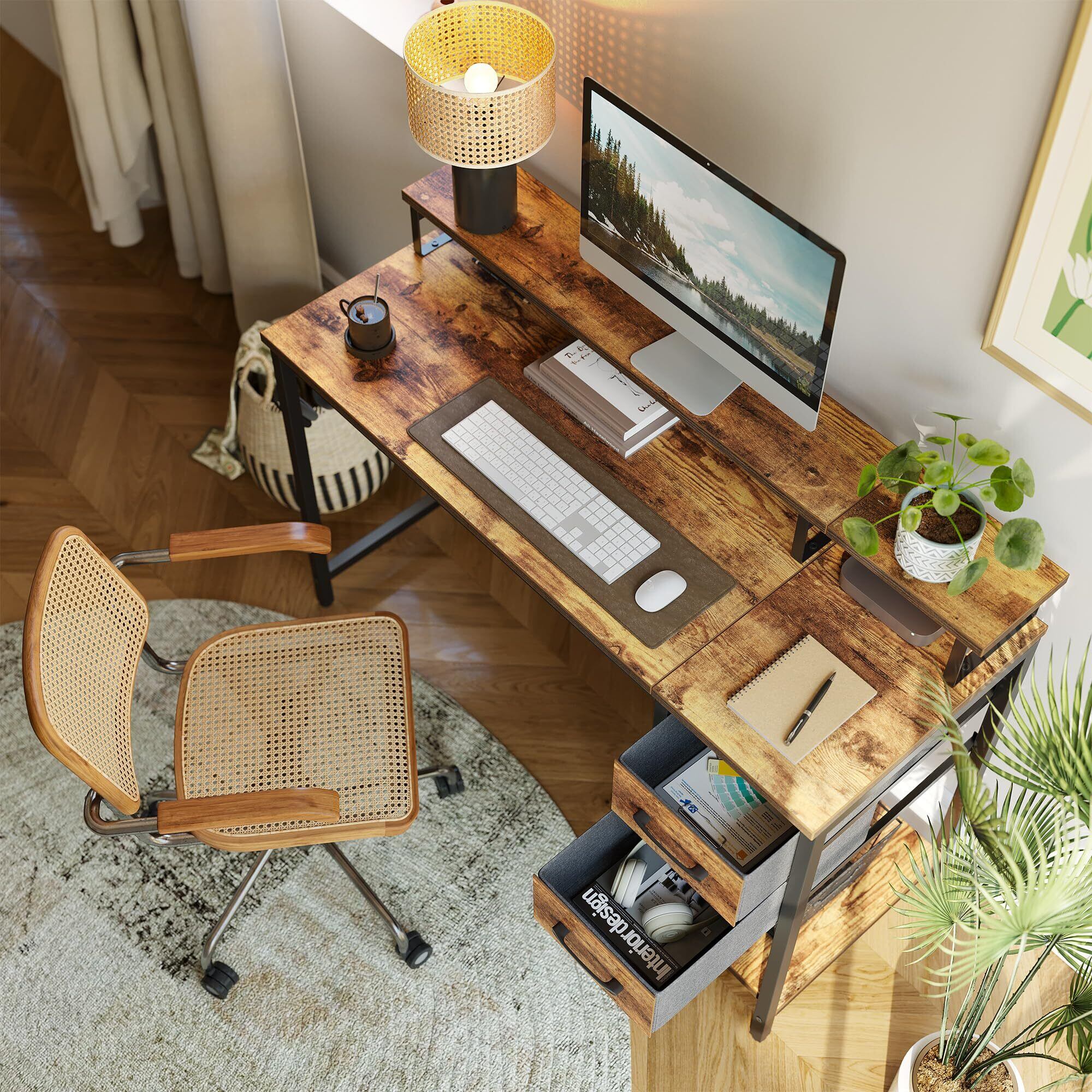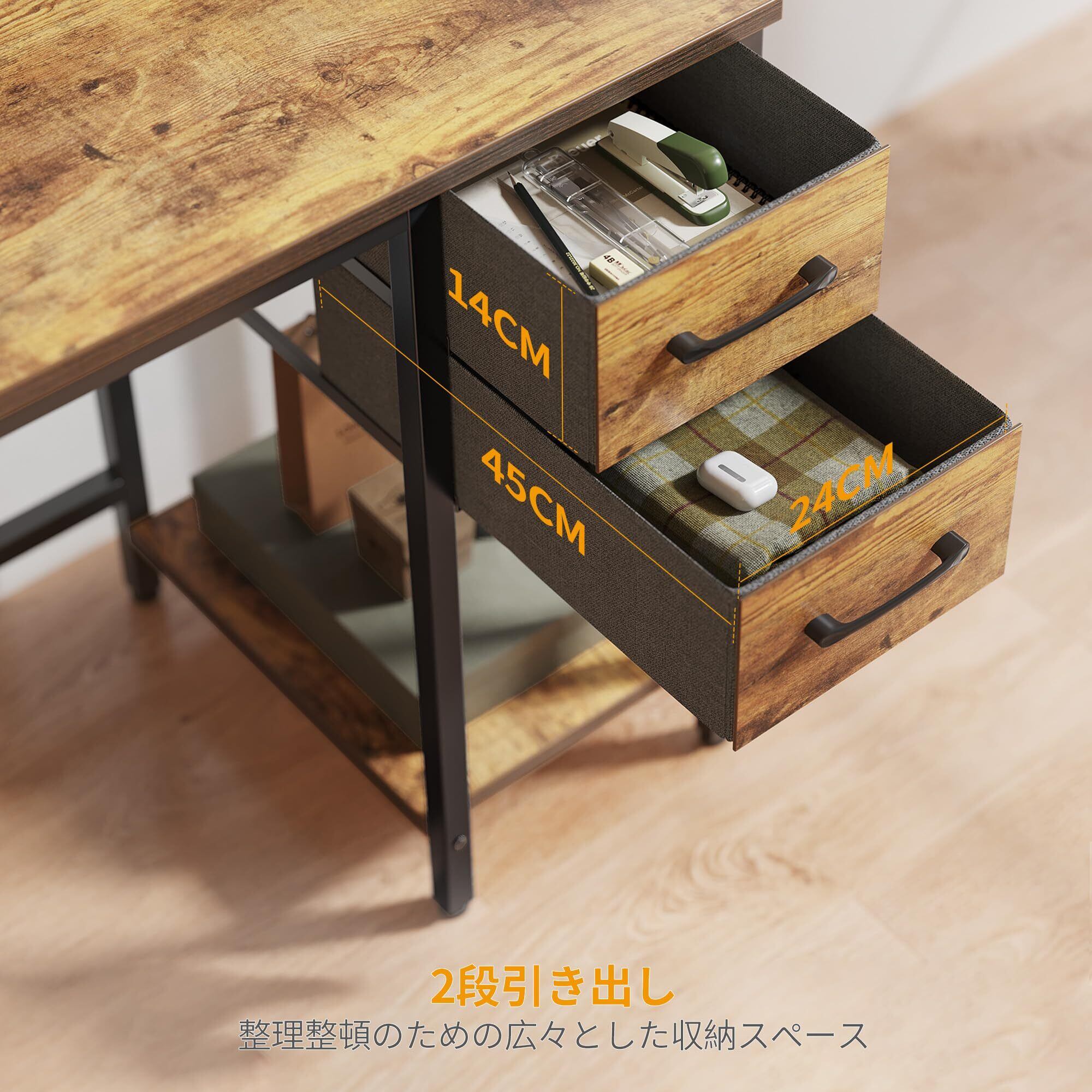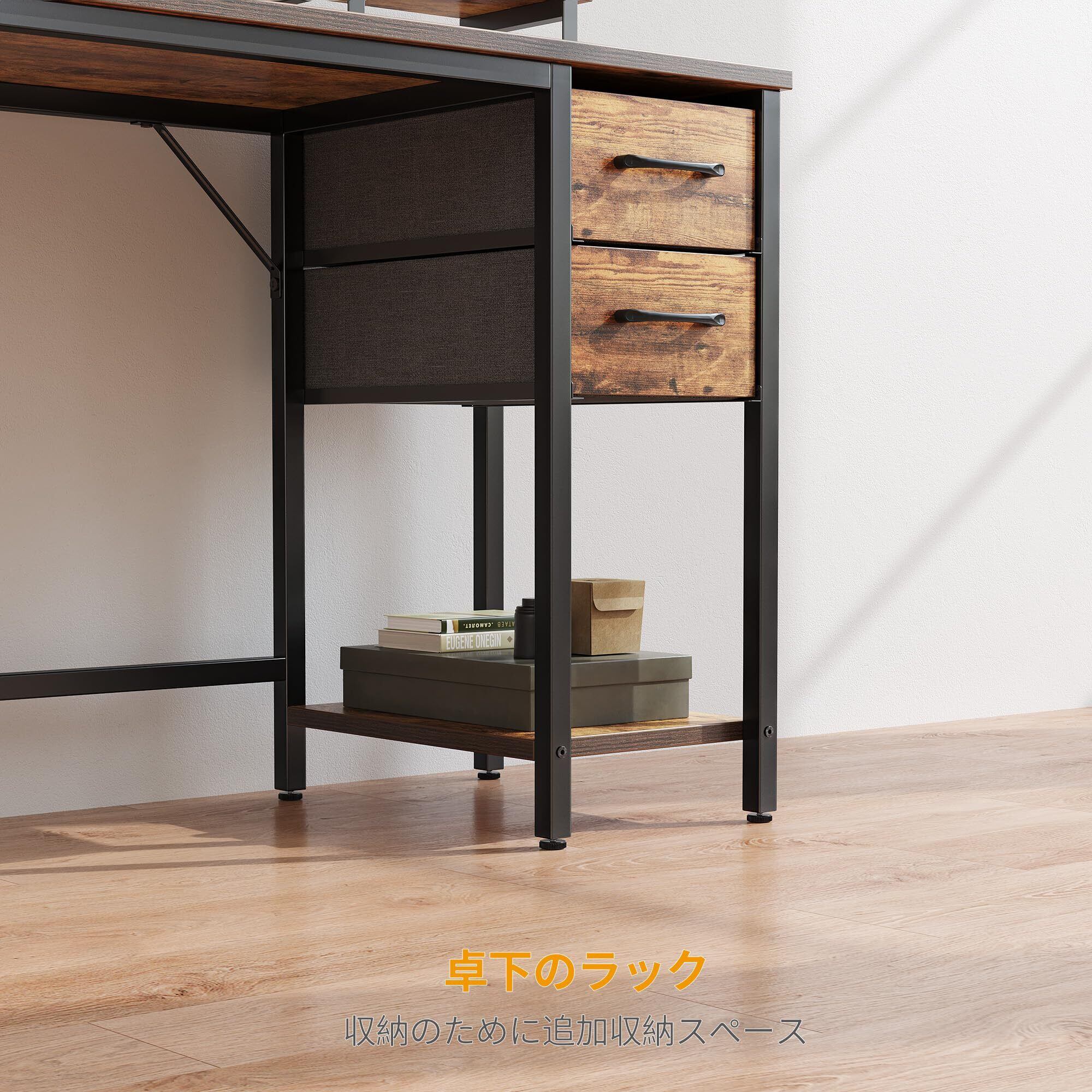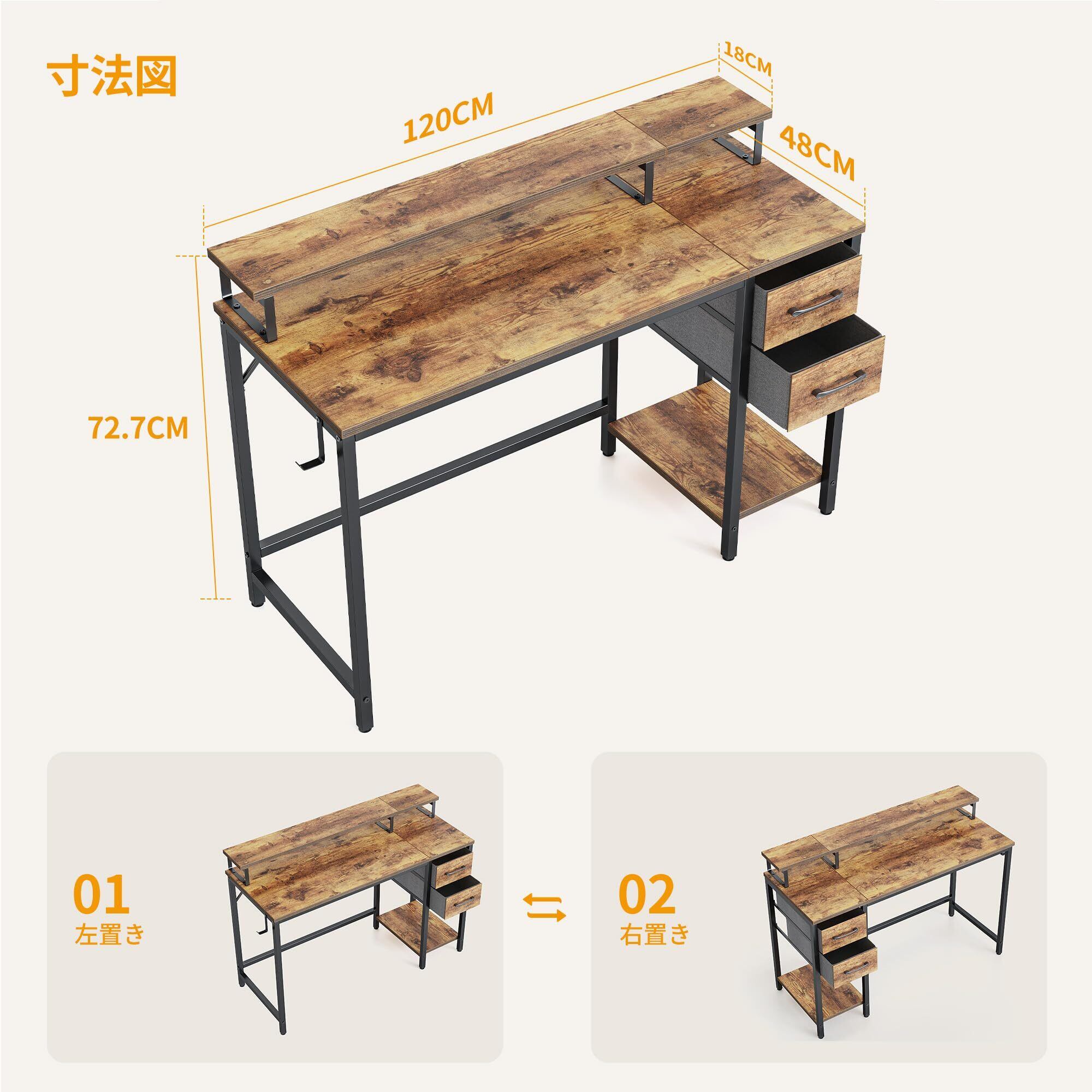CubiCubi パソコンデスク 机pcデスク ラック付き 引き出し付き 安定性 おしゃれ 一人暮らし 幅120cm*奥行き48cm ブラウン