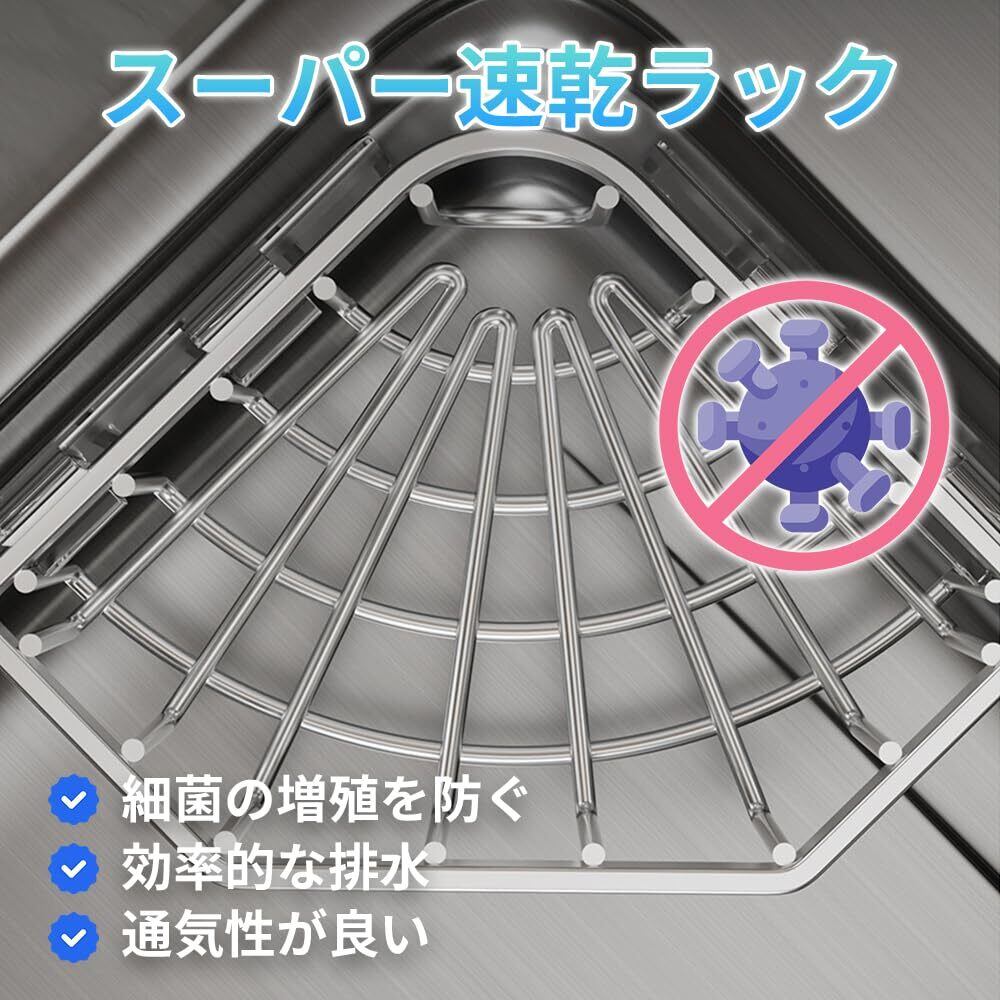【スペースを有効活用するキッチン用品】三角形のデザインのステンレス製排水ラックは、キッチンやバスルームの占有スペースを効果的に削減します。コーナー、シンクの隣、キャビネットの端など、スペースを最大限に活用する適切な場所を見つけることができます。通気性に優れた設計で、スポンジを早く乾燥させることができます。湿気から解放され、清潔なキッチン環境を維持しましょう