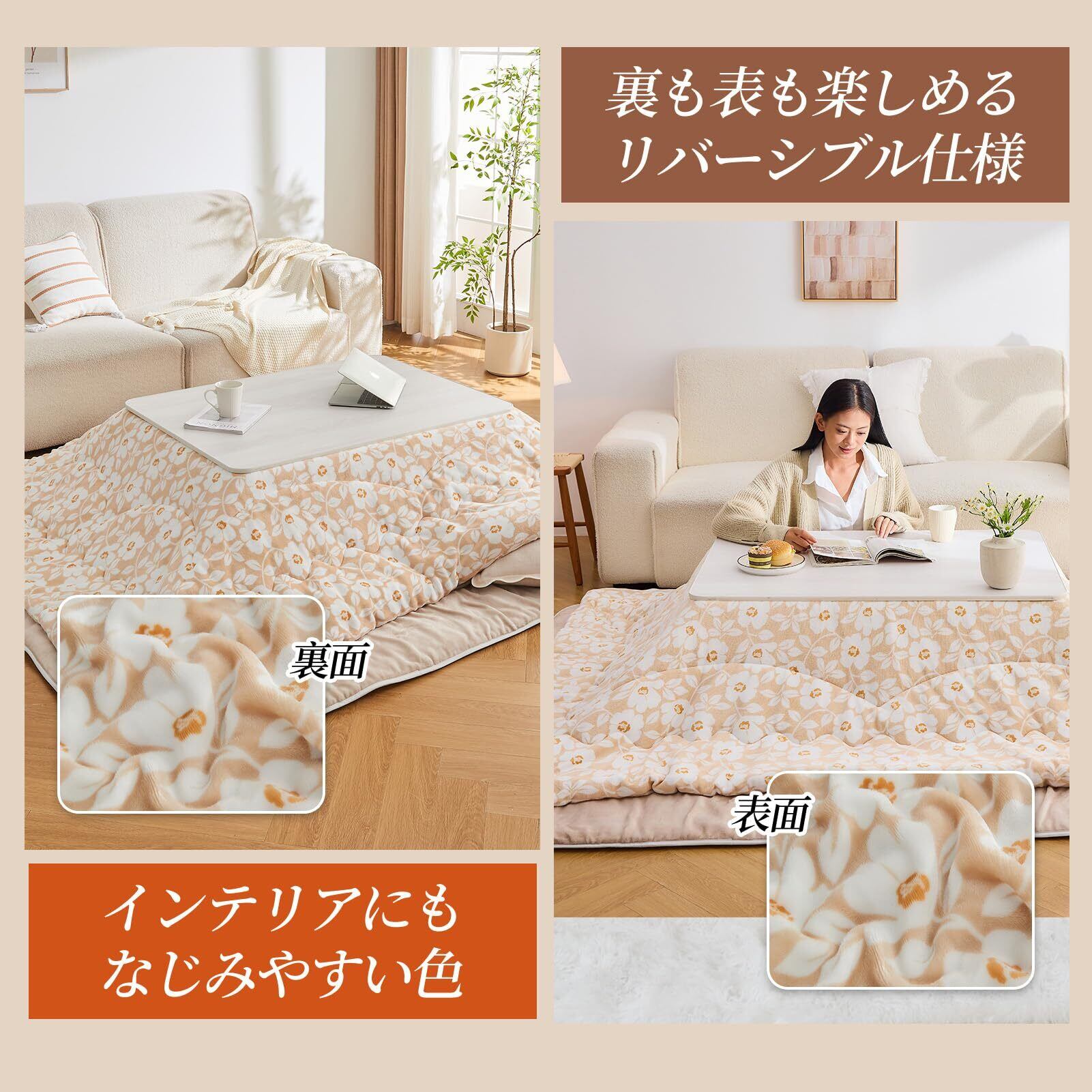 EMME こたつ布団 長方形 コタツ布団 暖かいこたつふとん 190 ×240cm こたつ用布団 あったか こたつ掛け布団 高密度フランネル リバーシブル 冬用 コタツふとん 洗える 静電気防止 薄型 おしゃれ 単品 フランネル花柄