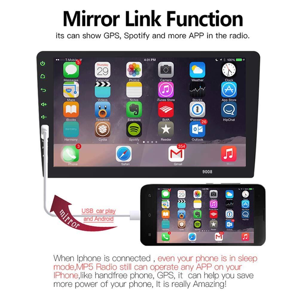 【iOSとAndroidのミラーリンク機能】:iphoneが接続されている場合、電話がスリープモードであっても、mp5ラジオは、ハンズフリー電話、gpsなど、iphone上の任意のアプリを操作できます。これにより、電話の電力を節約できます。 本当にすごい!
