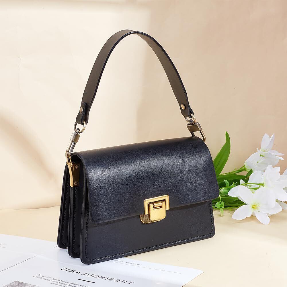 本革ストラップ:ブラックの本革カウハイドストラップとアンティークブロンズの亜鉛合金製回転式クラスプでできています。より耐久性に優れ、手触りが良くて壊れにくく、簡単に変形したり表面が剥がれ落ちることがありません。幅が広めのストラップですので、バッグを持ち歩いている間、その快適さと軽さを実感していただけます。