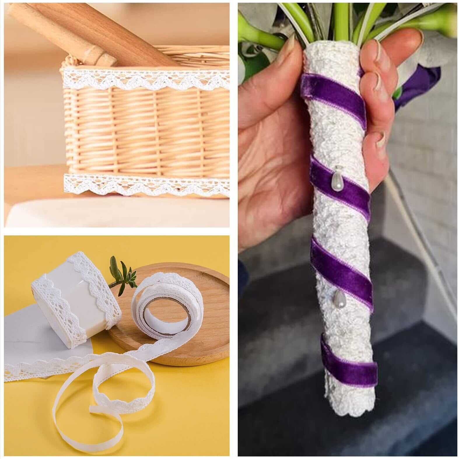 幅広い用途 - これらのコットンレースリボンロールは、ギフトバスケットの包装、結婚式の招待状の装飾、テーブル装飾、ガーランド作り、縫製、グリーティングカード作り、ケーキ装飾、パッケージデザイン、フラワーデザイン、ドレス作り、ホームセンターなどに適しています。