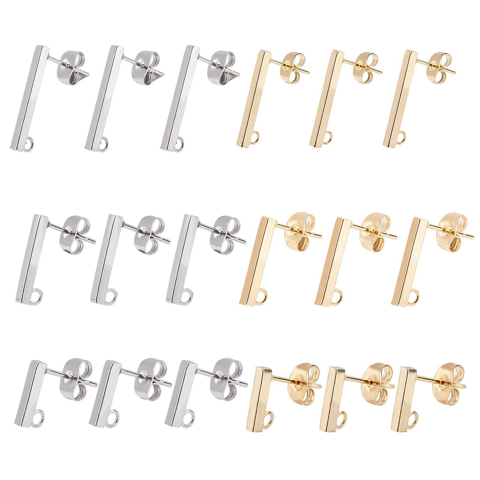 UNICRAFTALE 約36個 2色 3種サイズ 10/15/20mm ステンレス ピアスパーツ ループ付き ピアスキャッチ付き 長方形 スティック型 ステンレス スタッドピアス イヤリングパーツ ポストピアス 金具 ピアスパーツ 耳飾り イヤリング作り アクセサリーパーツ クラフト用品 手作り素材 DIY材料