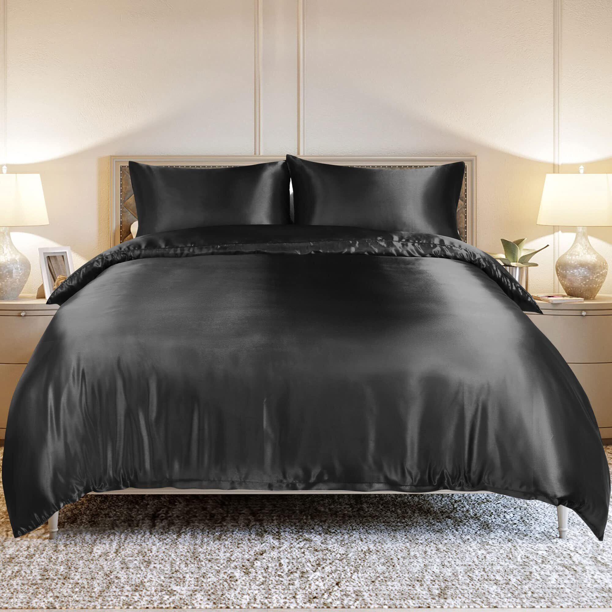 PiccoCasa 寝具カバーセット サテン 布団カバー セミダブル 4点セット シルキー コンフォーター カバーセット ダブル レーヨン ツルツル 光沢 超ソフト 寝具セット ブラック ダブル