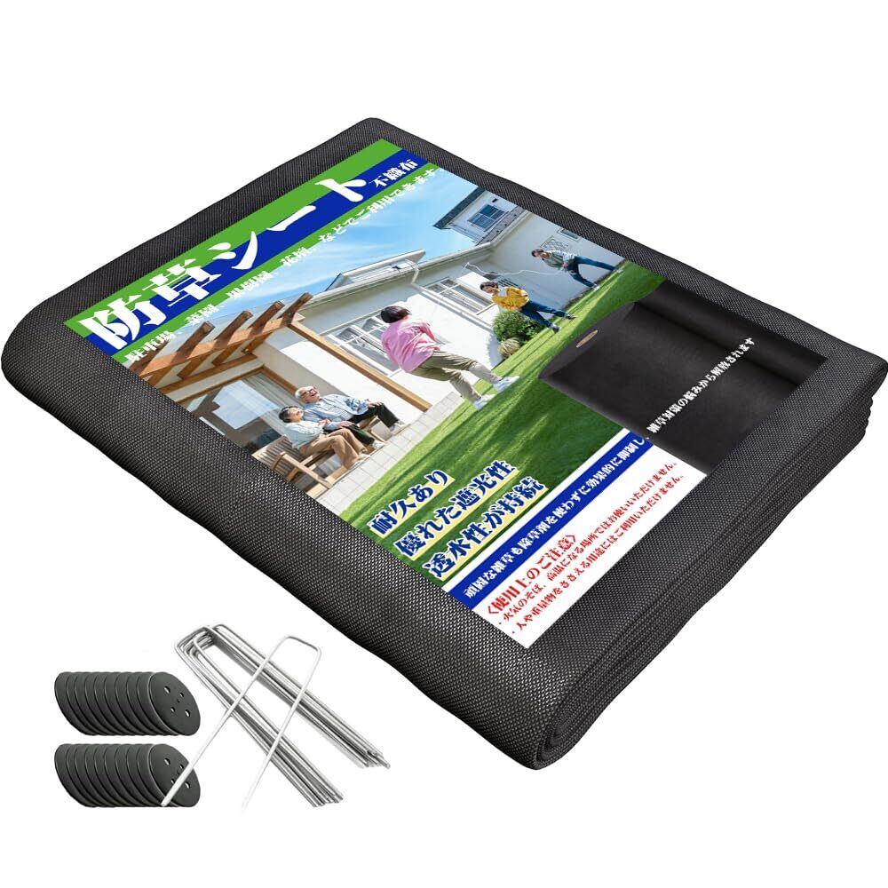 防草シート 除草シート 1m×10m 不織布 雑草防止シート 高透水 高耐久 高密度 ぼうそうしーと 防そうシート 厚手 10年耐久 工事用 園芸用 人工芝下 固定ピン10本と黒丸10枚付き
