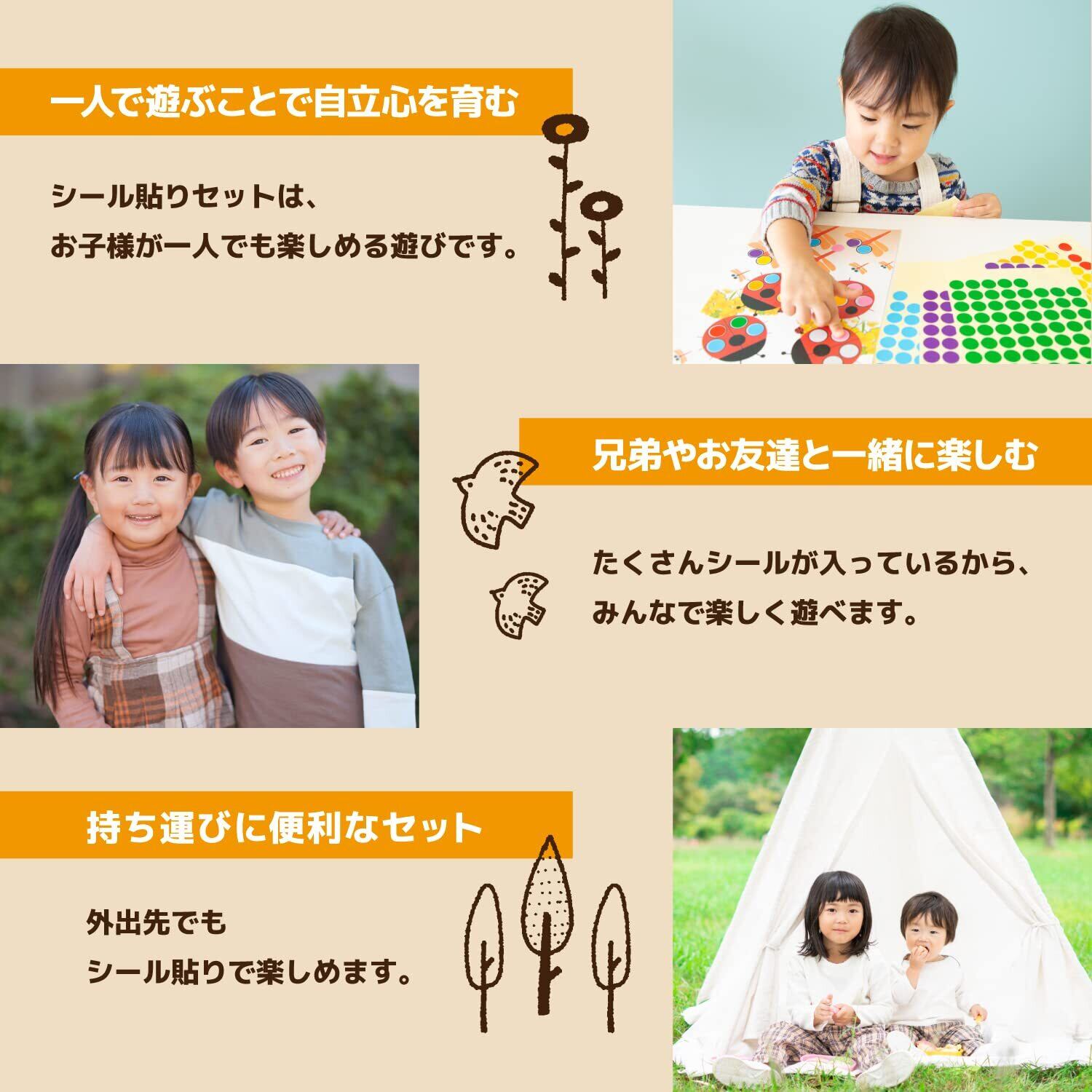 【シール貼りセット】 モンテッソーリ教育でも使われている『知育玩具 シール貼りセット』です。楽しいシール貼りの遊びで、お子様の集中力を高めます。カラフルなシールと可愛いイラスト台紙をセットにしました。