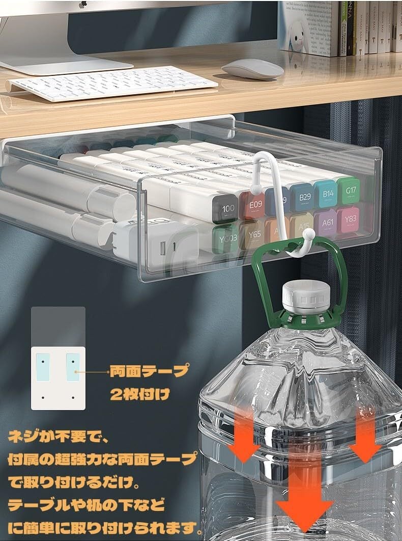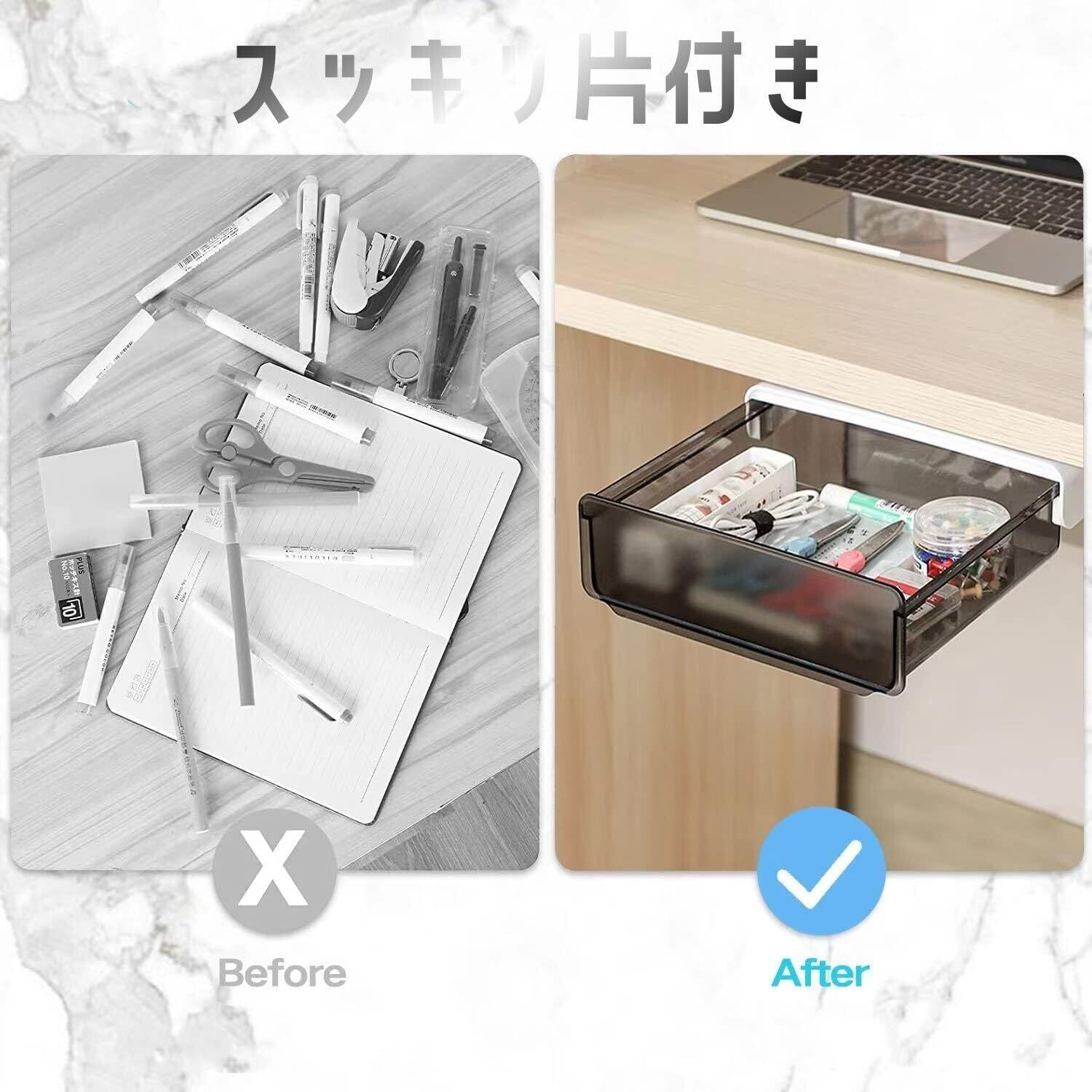 ✏️【設置簡単】レジ不要、強力な粘着テープ付け、設置場所に張り付けるだけでしっかり固定できます。貼り付け前に、テーブル下をきれいに清潔してください。L24cmX W20cmX H7.2cmでより大きなサイズのデザインをアップグレードし、ニーズを満たすために多くのものを保存することができます*引き出しをしっかりと貼り付けるために、使用前に24時間待ってください。