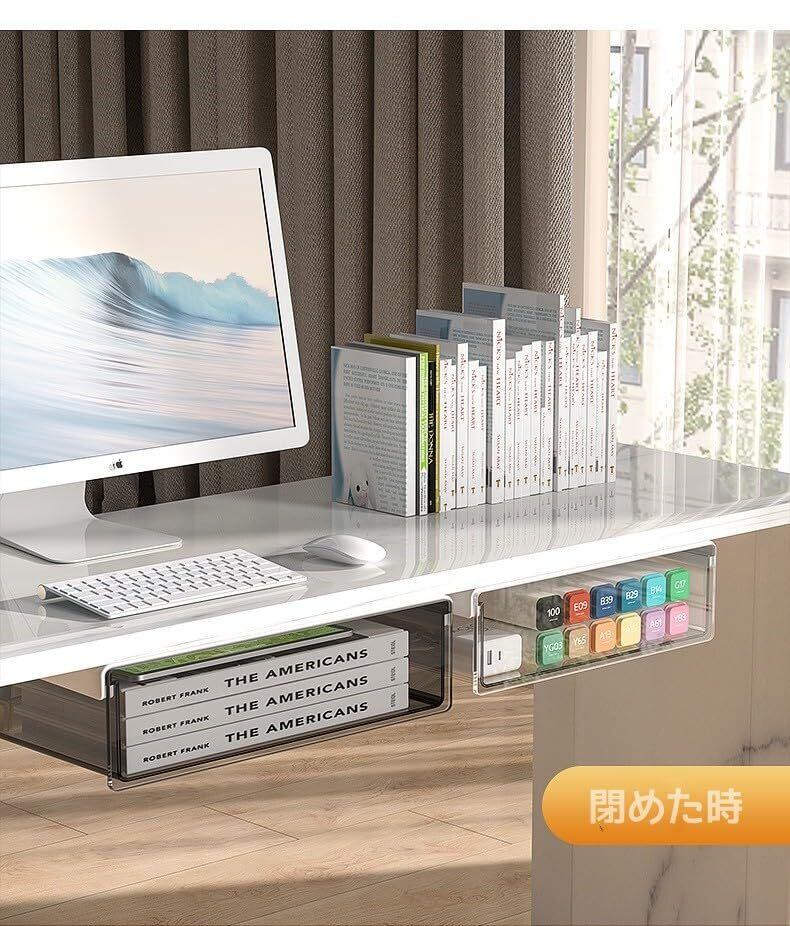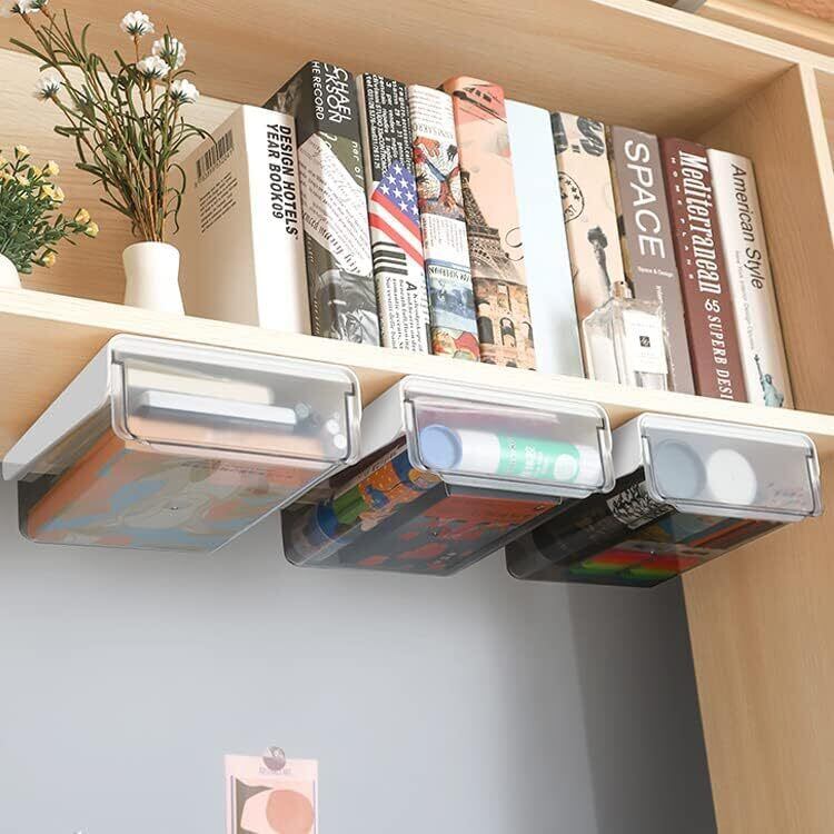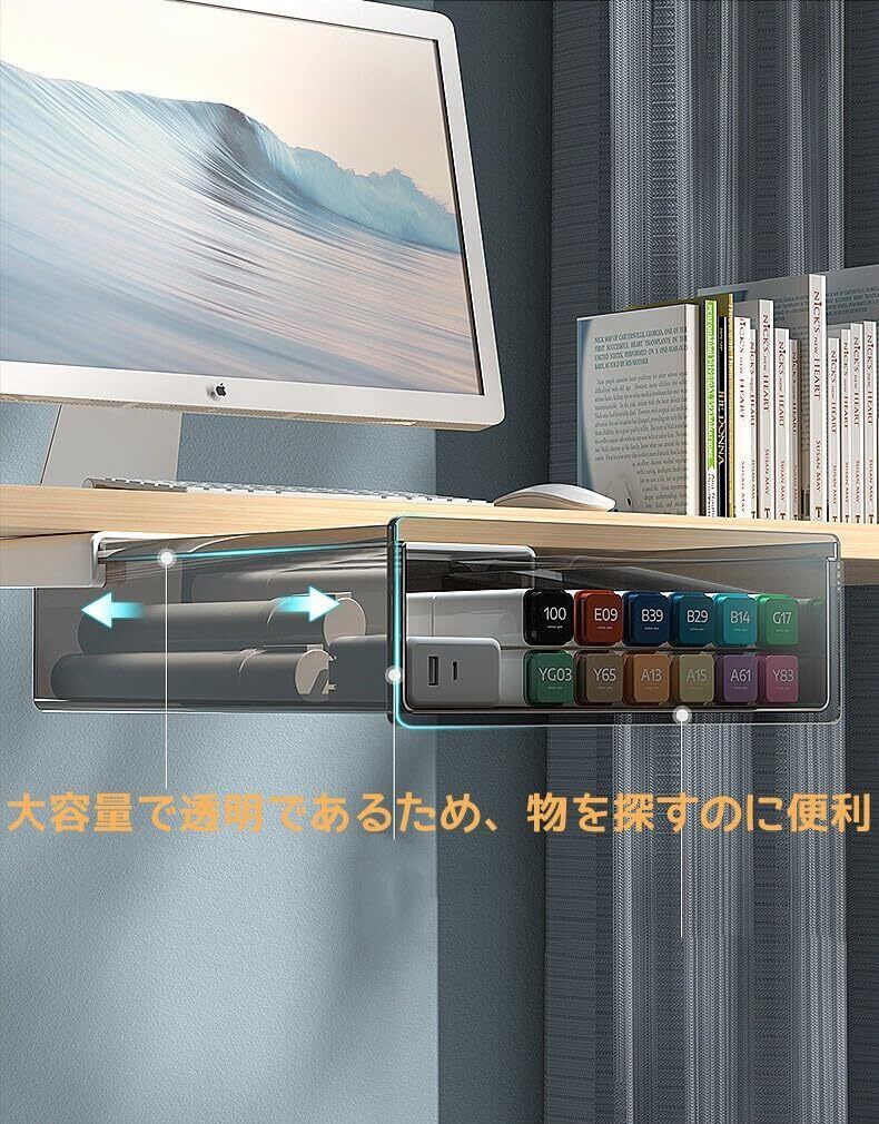 ️【多用途デスク下引き出し】机の上に設置することができます: 机の上に設置して、ペン、メモ、充電器、ヘッドホン、ティッシュなど多くの小物を収納することができますし、リビングルームでリモコンやスナックを収納したり、化粧台の下に口紅やジュエリーを収納することもできます。リビングでリモコンやスナックを収納したり、化粧台の下にリップスティックやジュエリーを収納したりと、清潔でスイートな住まいを実現するのに役立ちます。