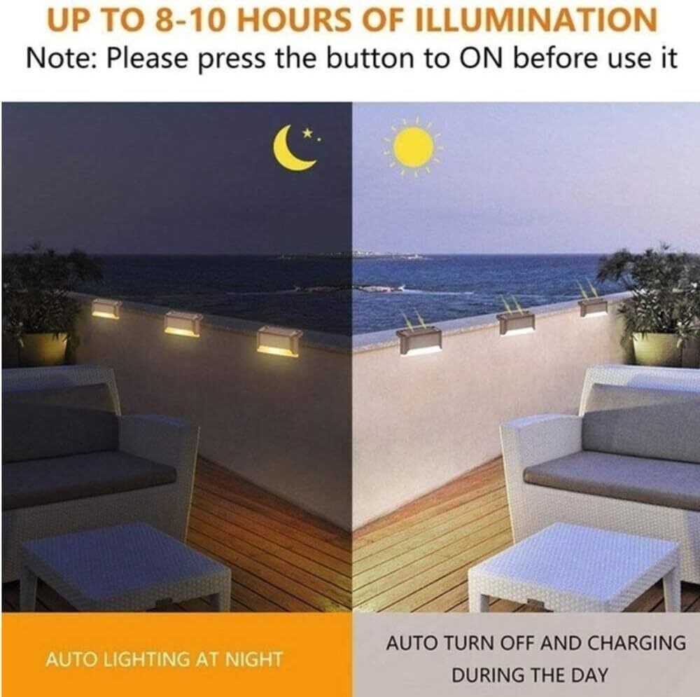 【眩しくないウォームライト】:各ソーラーデッキライトは3ルーメン。暖かい白いLEDは、パティオ、庭、または庭を照らすのに十分です。これは、家族全員が夜に階下に行くのに安全です