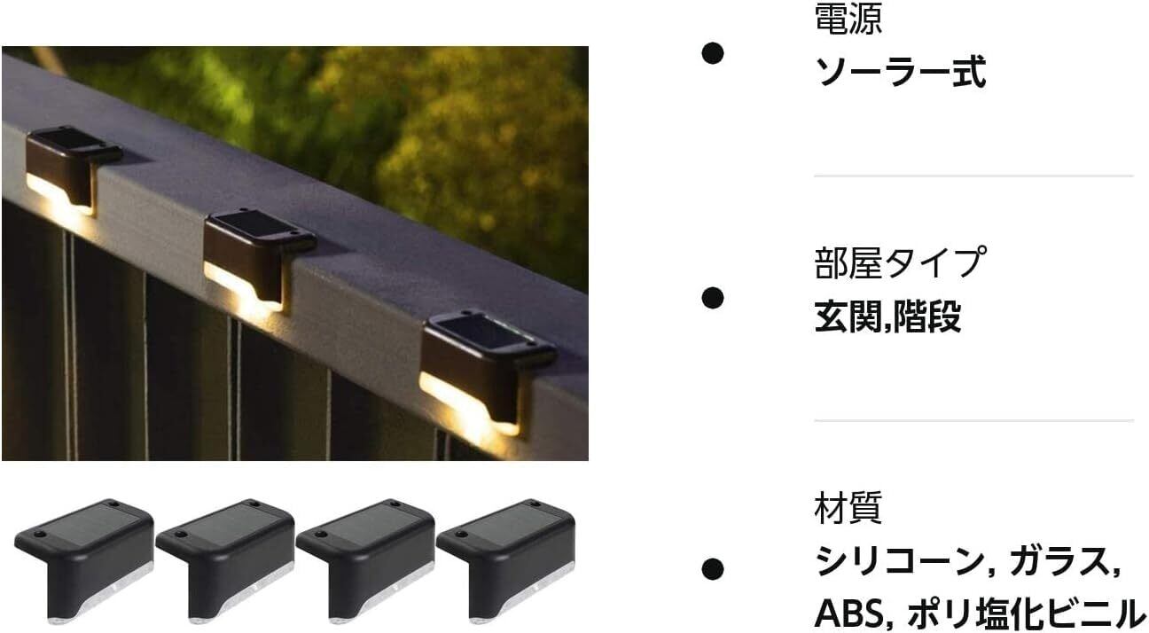 Yanhao 4個 ソーラーライト 屋外 デッキライト 暖色 ガーデンライト 庭園灯 防水 明暗センサー イルミネーション LED 8時間連続使用可 太陽光発電 太陽光パネル充電 IP65防水 防湿 防塵 電球色 高輝度 自動点灯・消灯 外灯 飾り用 ベランダ 階段 足元 柵 玄関/庭/芝生/車道/歩道に最適