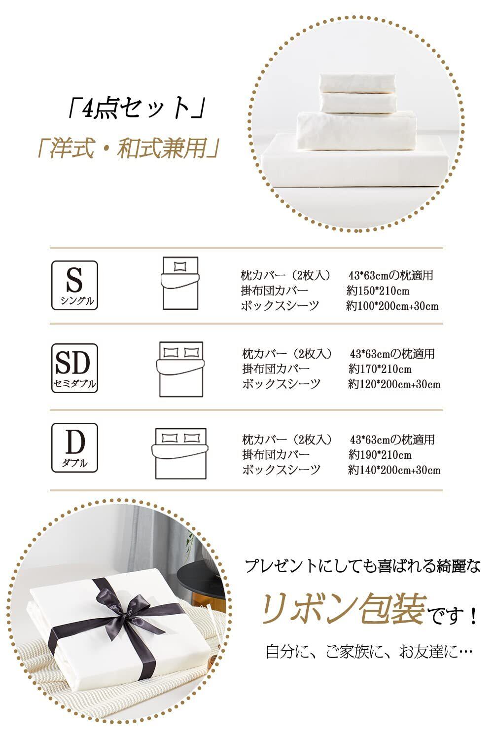 【心を込めた設計】枕カバー:合わせ式丨掛ふとんカバー:片側全開仕様とYKKファスナーを採用、スムーズな開閉と出し入れを実現、8カ所の内ヒモ付きでズレにくい丨ボックスシーツ:全周ゴム付き、和洋兼用